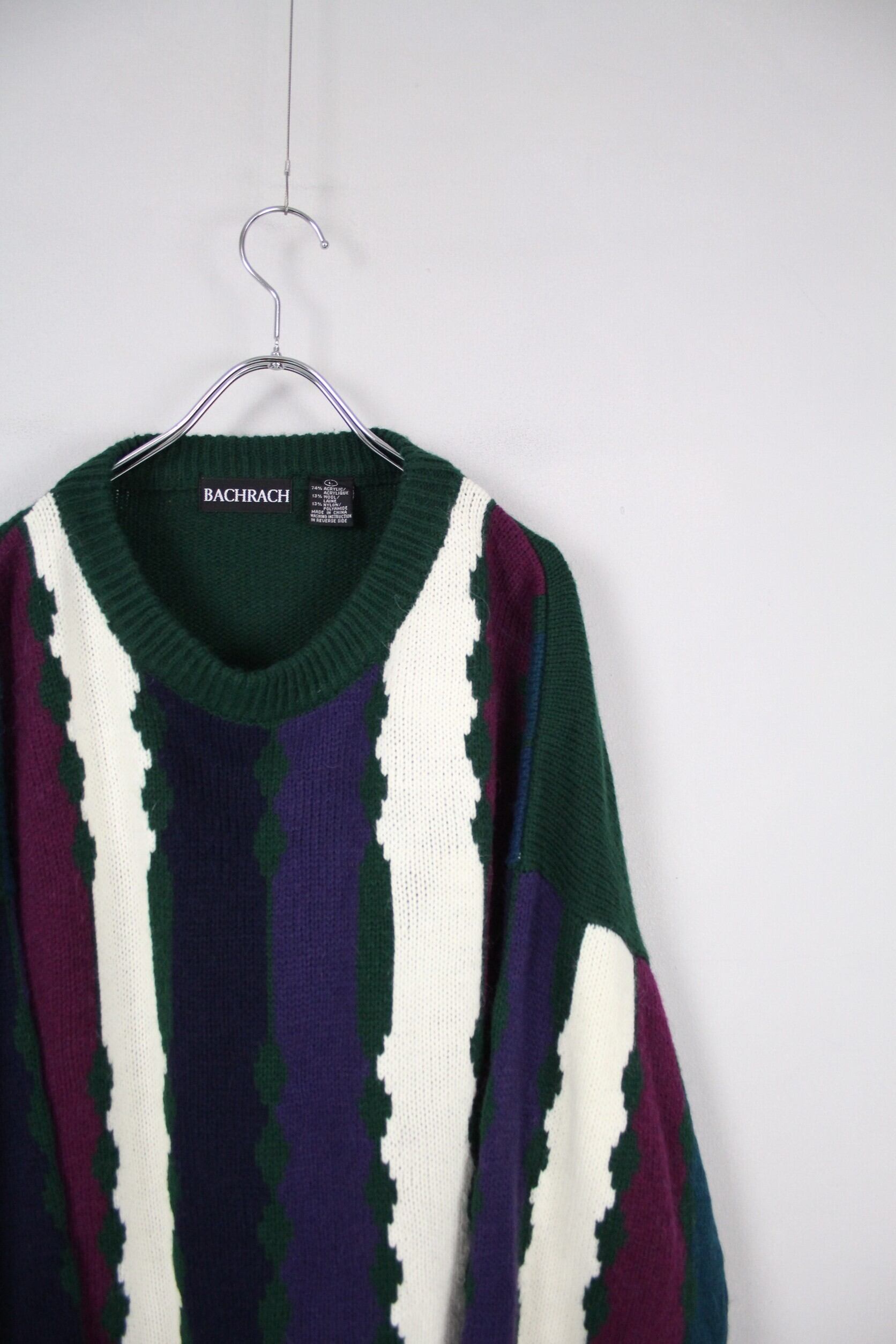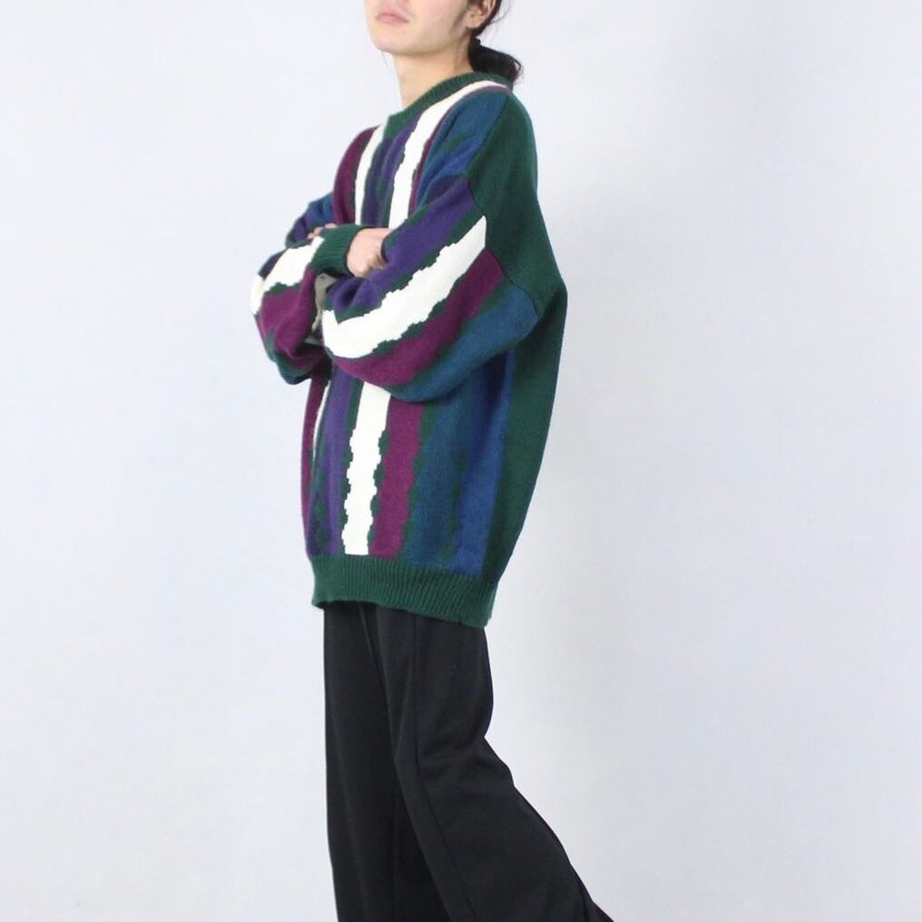オーバーサイズ ドロップショルダー 総柄ニットセーター 【OT-3925】