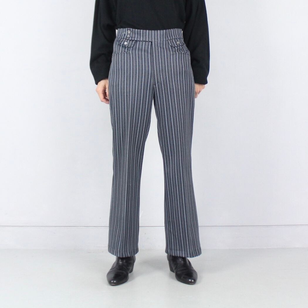vintage 織柄ストライプパターン バギーフレアパンツ【CO-1828】