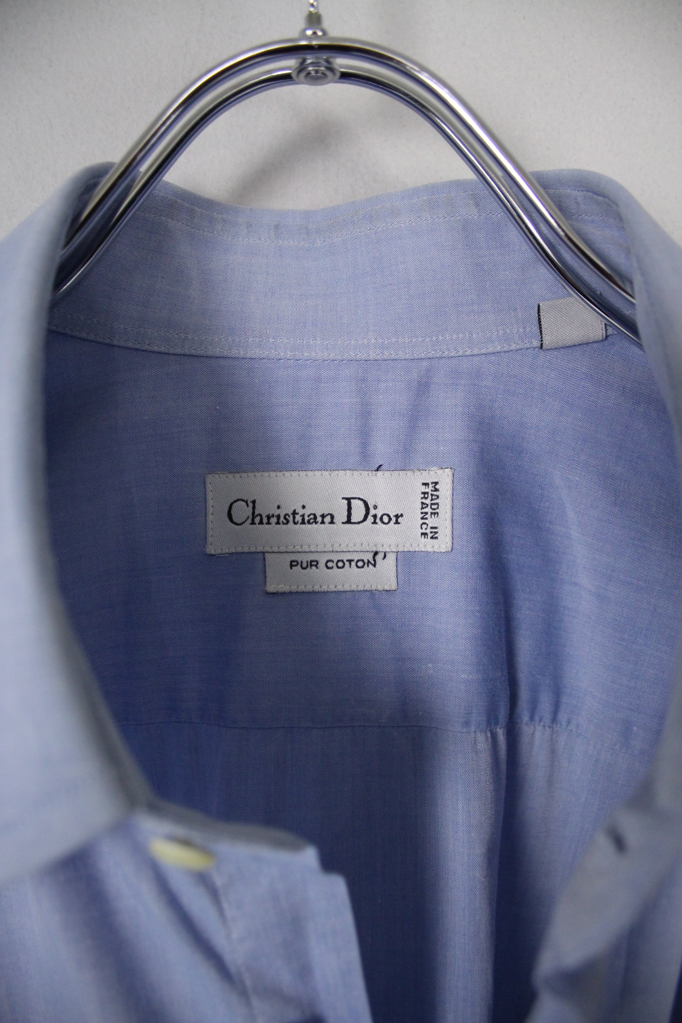 1990's Christian Dior Made In France オーバーサイズ ペールブルー ドレスシャツ 【OT-3791】