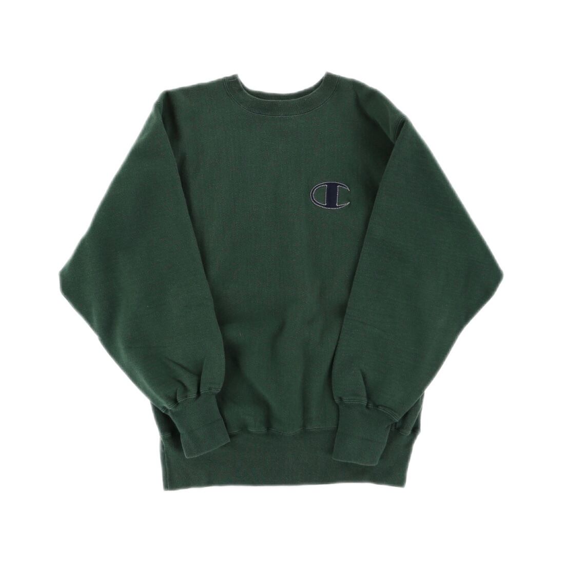 現行ではなくしっかりと90'sを感じられるワッペンが可愛いです。オリーブにも似たダークグリーンの渋さのあるカラーリング。ツボを押さえているスウェットですね。