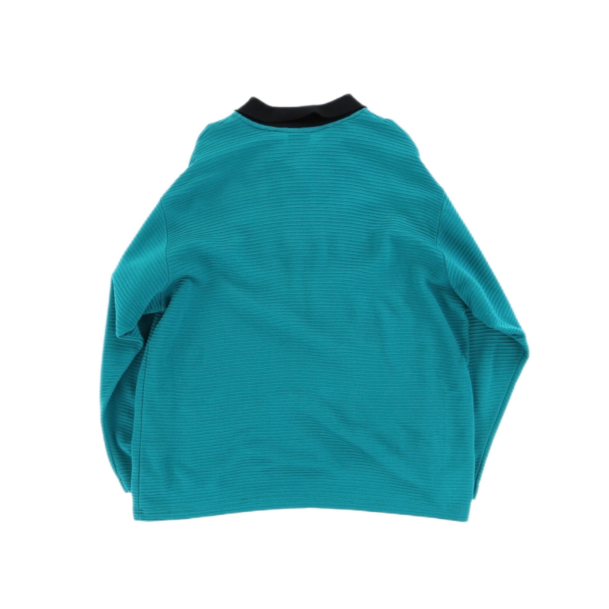 配色だけに限らずハーフジップに襟切替、ボディは凹凸のあるボーダーが施されていたりとデザインに非常に富んだアイテムです