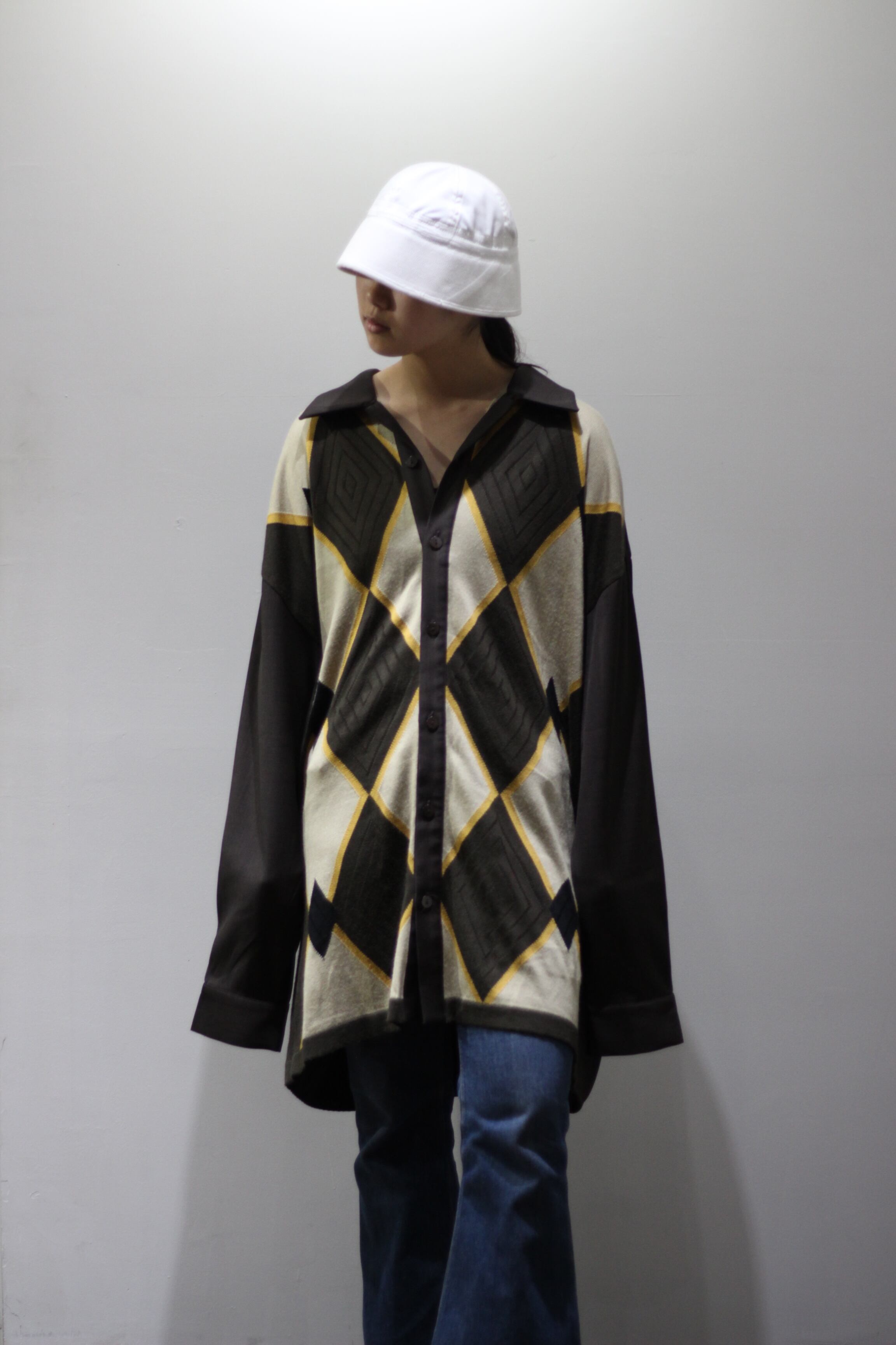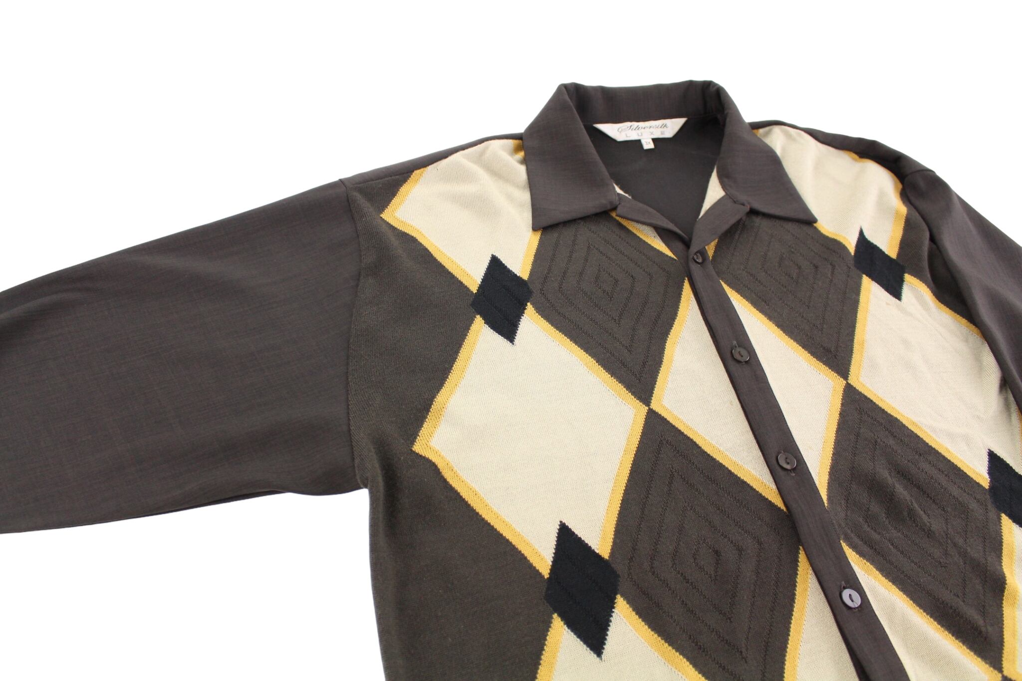 【COU】1990s super big silhouette front knit switch design open collar shirt -3393-
