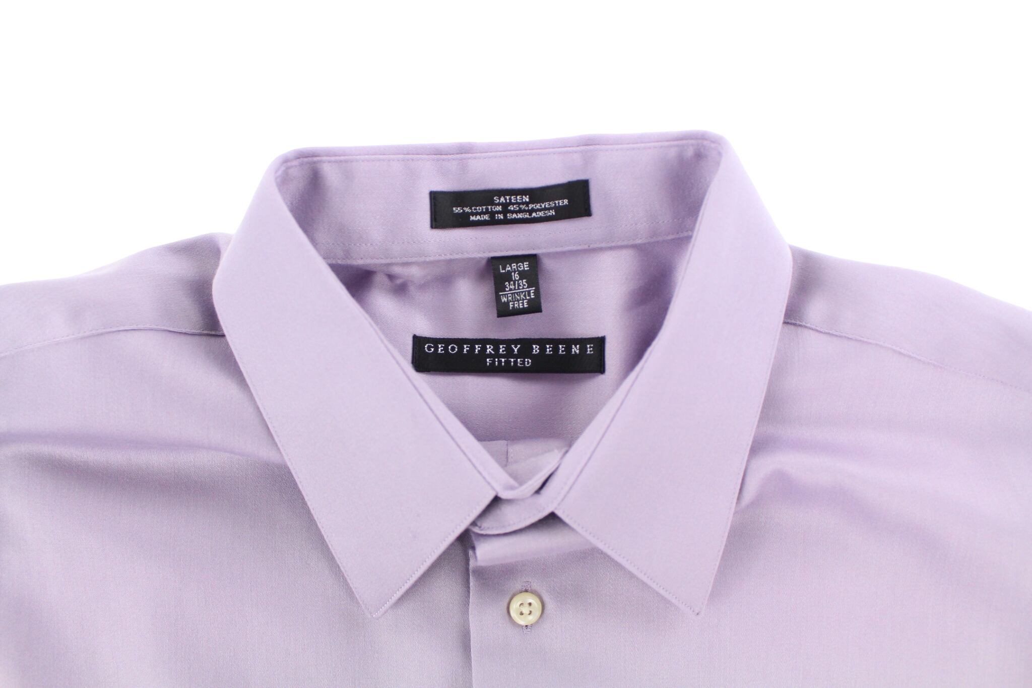 【OTSU】GEOFFREY BEENE satin fabric glossy color dress shirt "lavender" -7946-