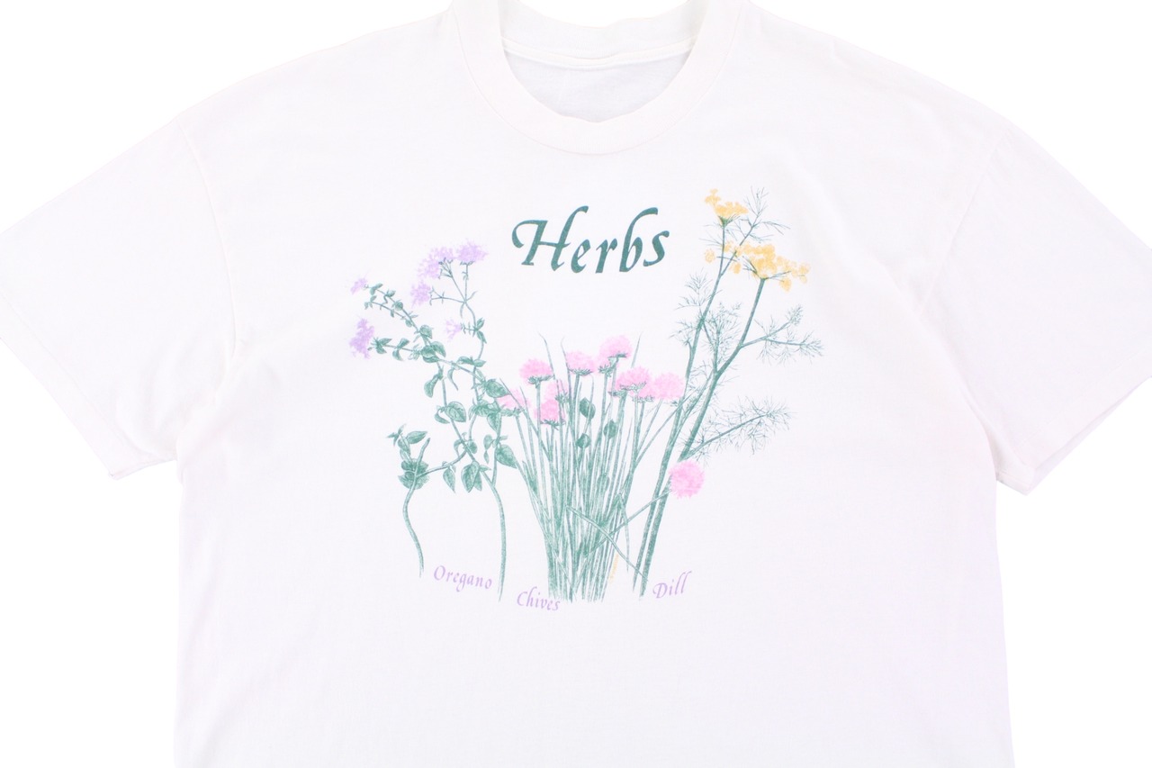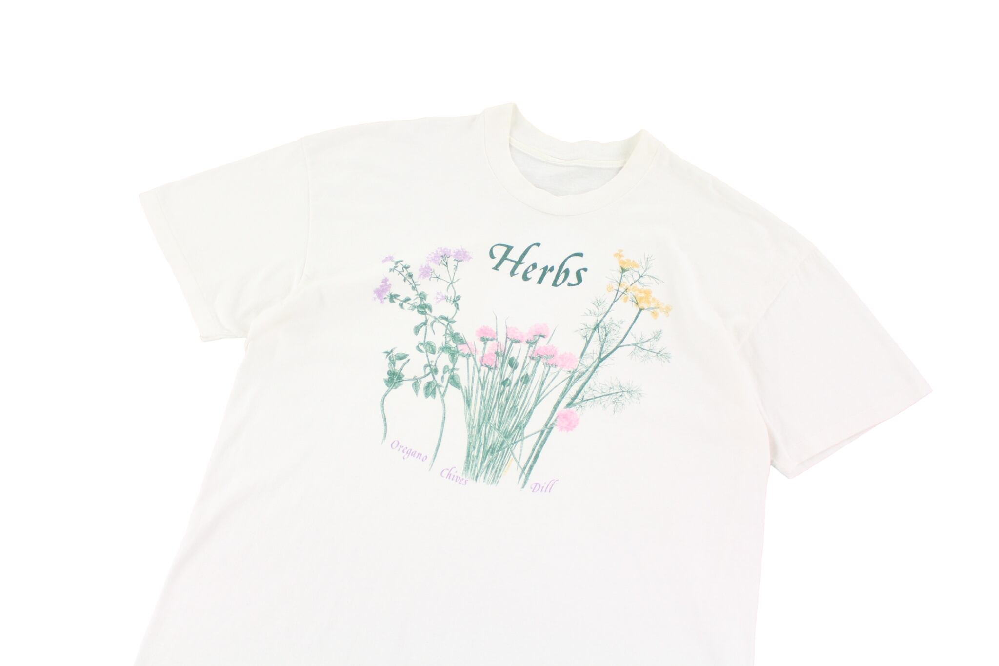 【OTSU】1990's vintage "Herbs" flower printed tee -10060-