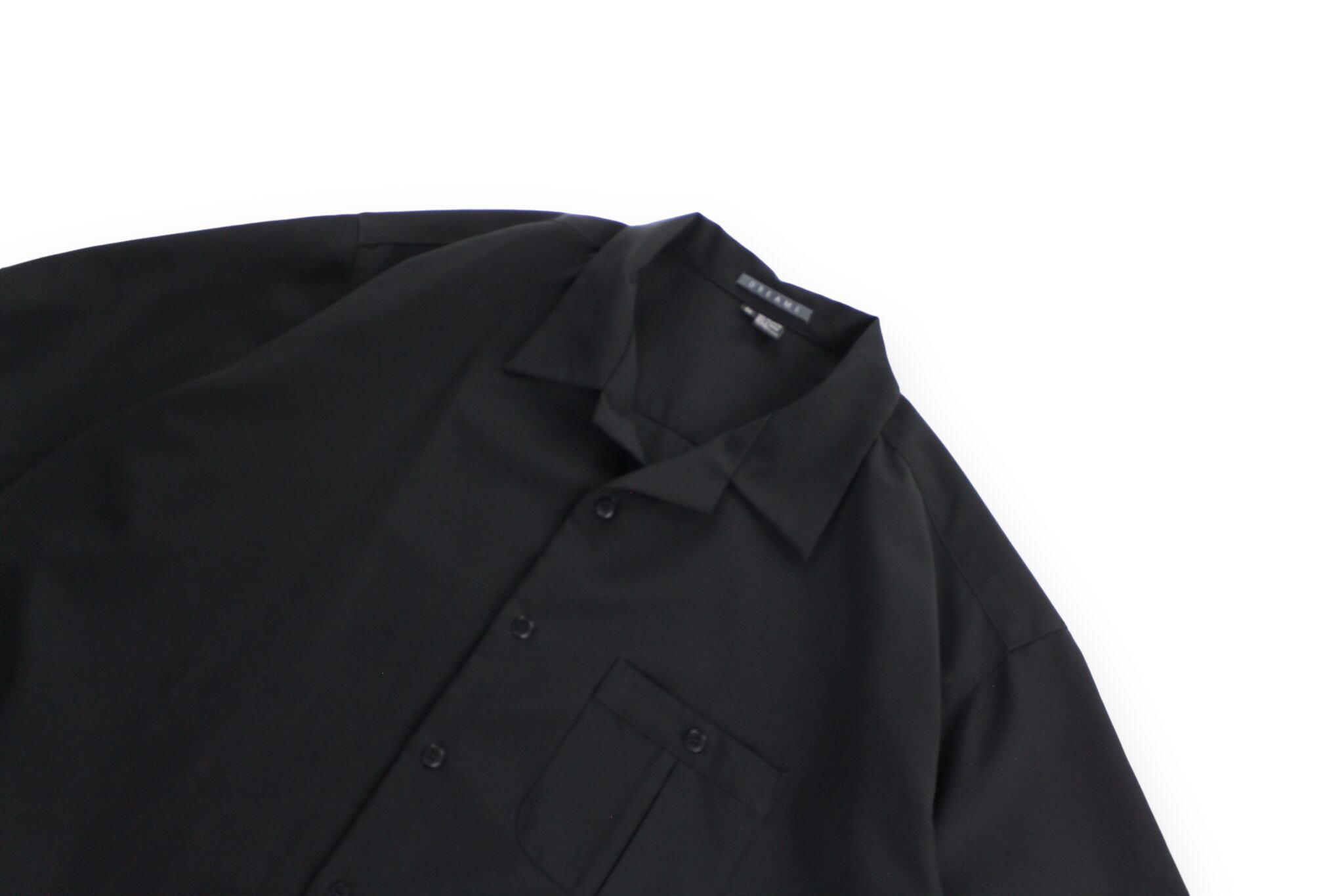 これぞオーバーサイズの醍醐味。たっぷりなボリュームのワイドボクシーシルエット。身幅に反比例した短丈シルエットのとろみ落ち感のあるオープンカラーシャツ。