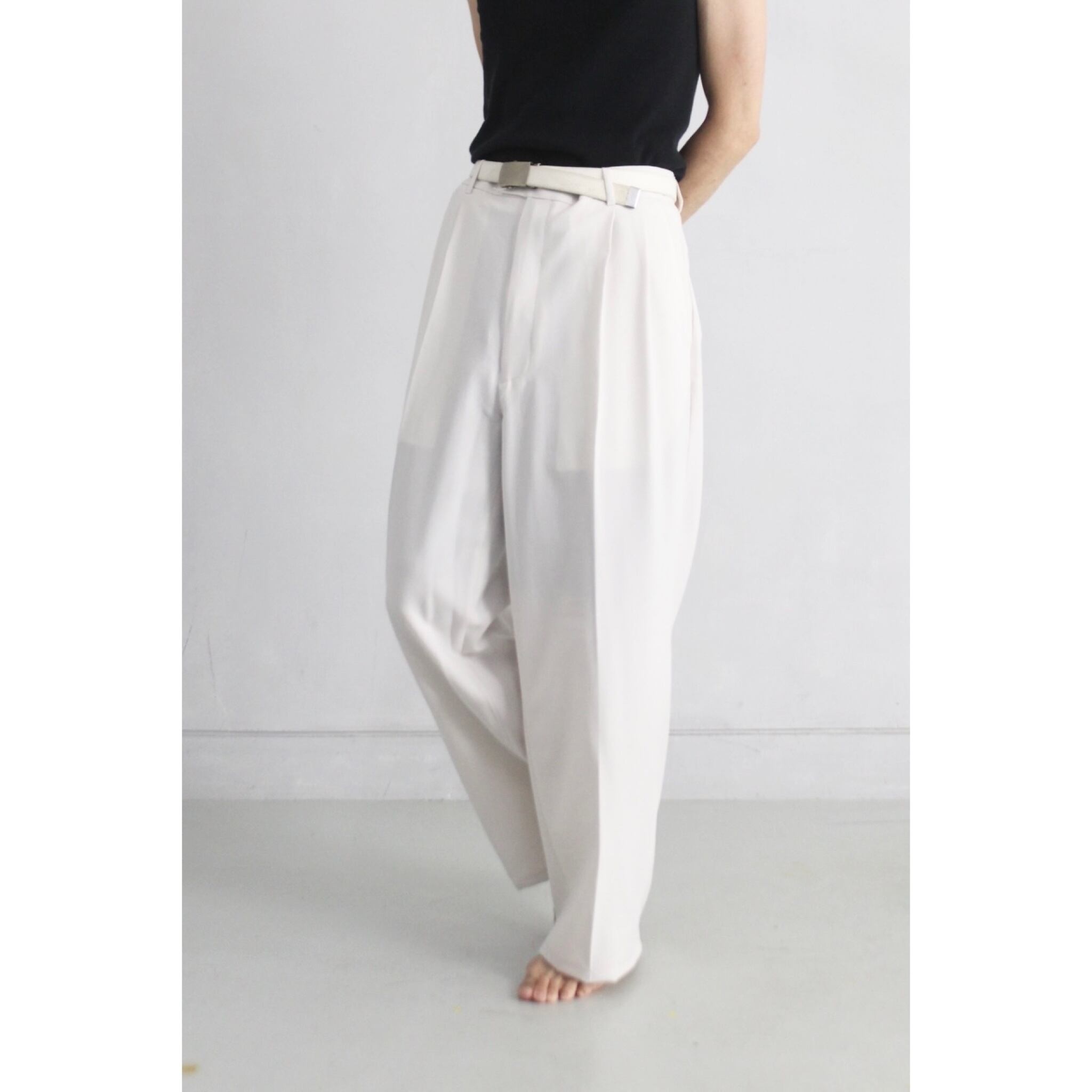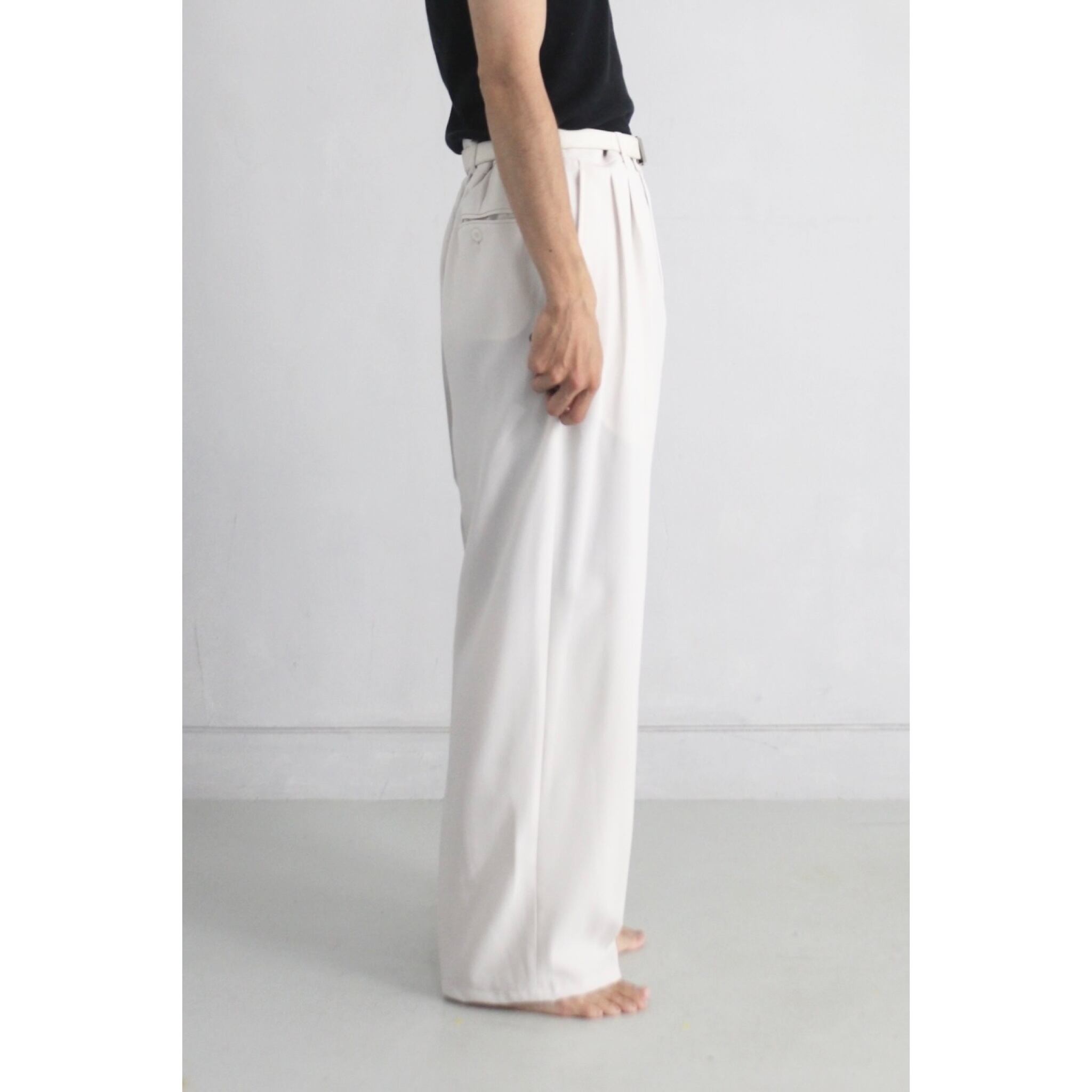 球数の少ないオフホワイトカラーの2タックワイドスラックスです。