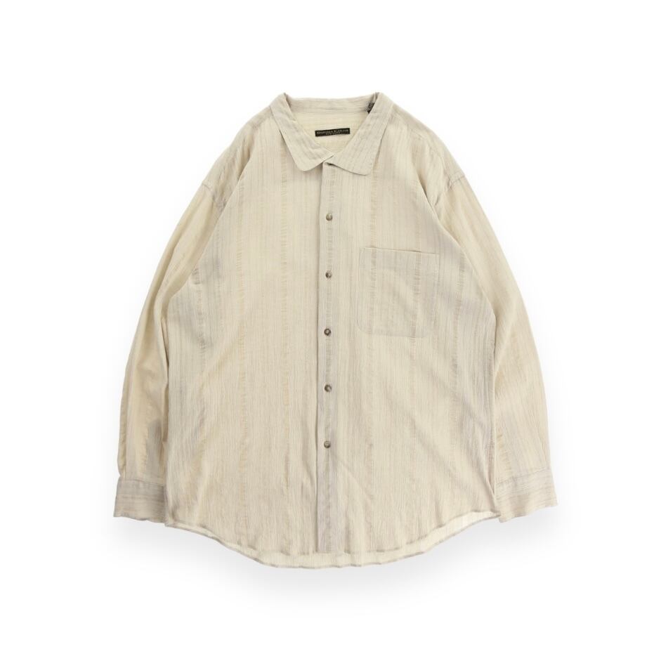 【COU】DONNA KARAN linen style fabric light once cotton woven design shirt -3812-