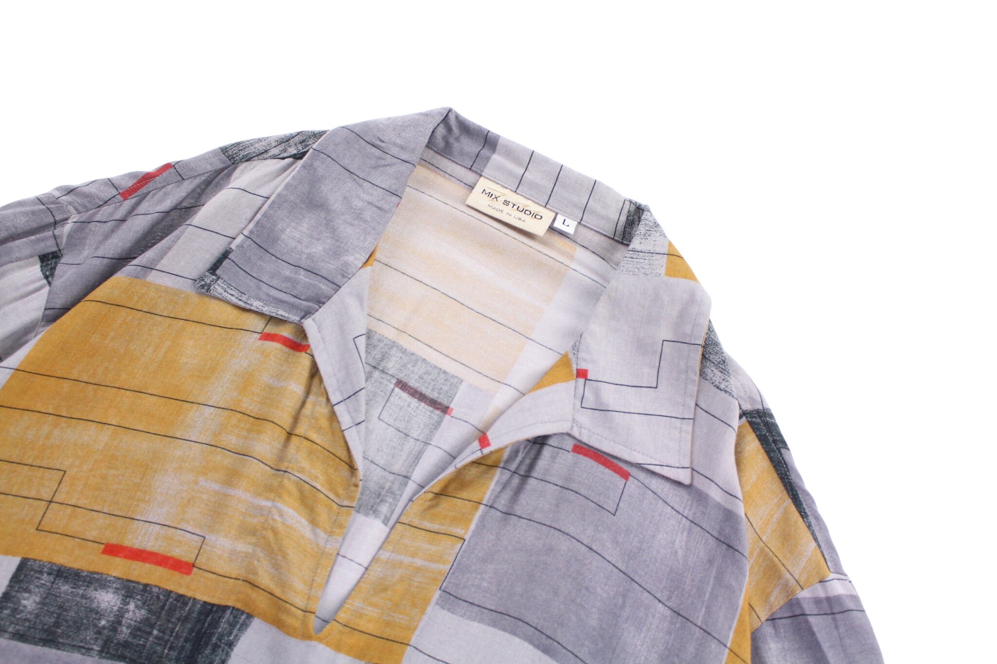 【OTSU】S/S art pattern skipper design shirt oversize -8095-
