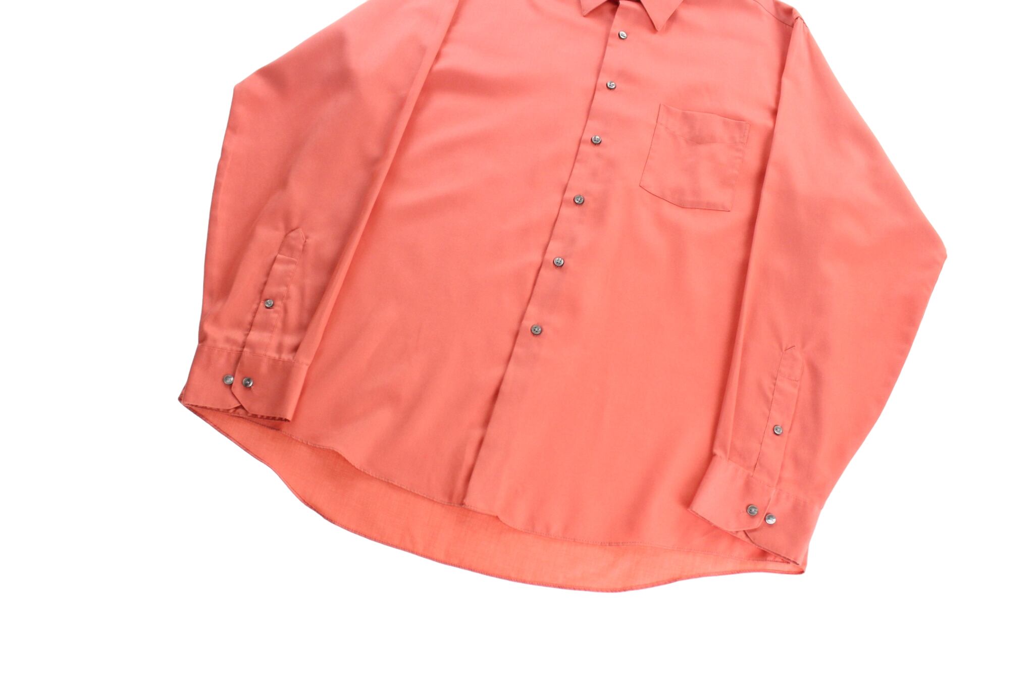 【OTSU】GEOFFREY BEENE satin fabric glossy color dress shirt "coral red" -8137-