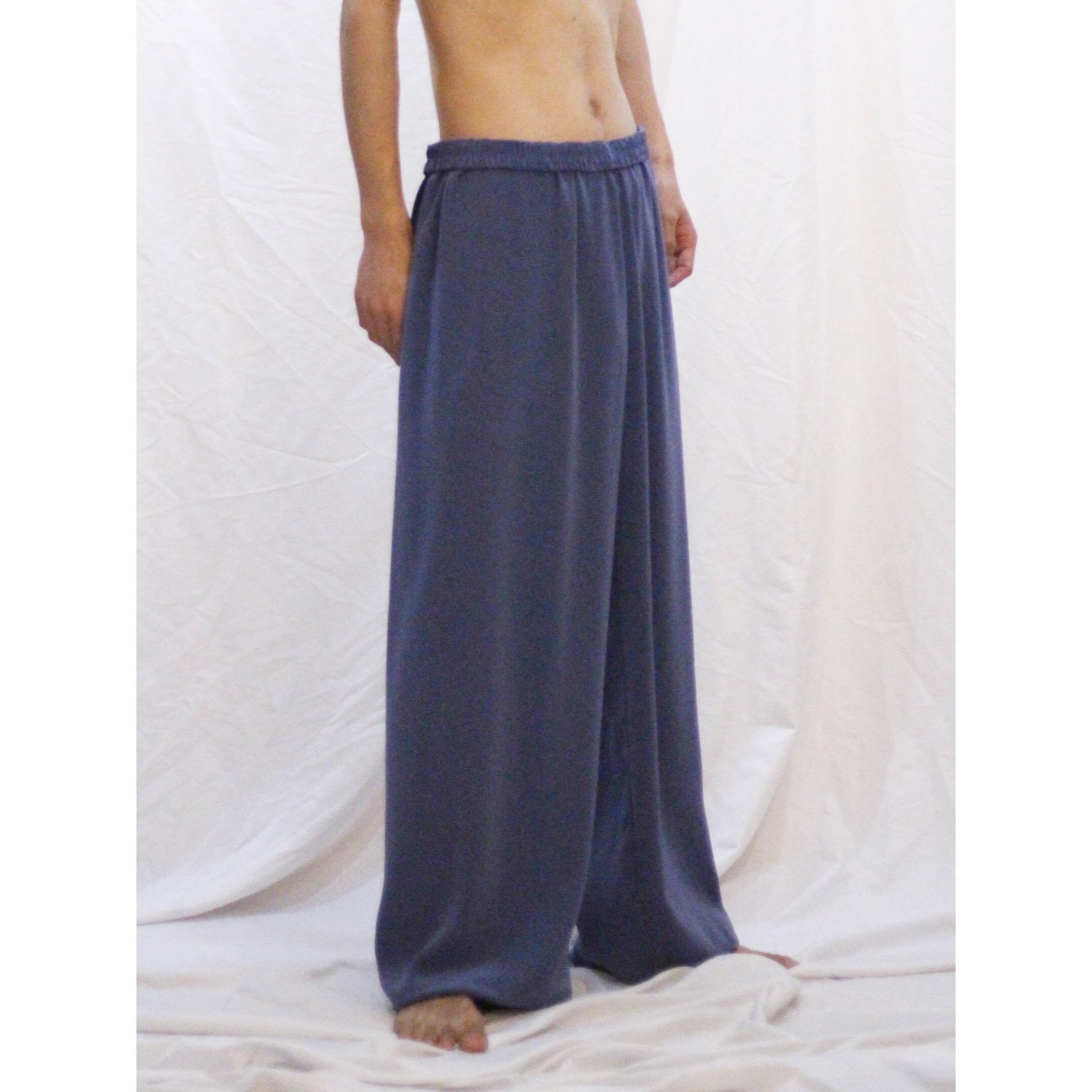 1990s vintage smork blue color wide easy pant / poly modern fabric