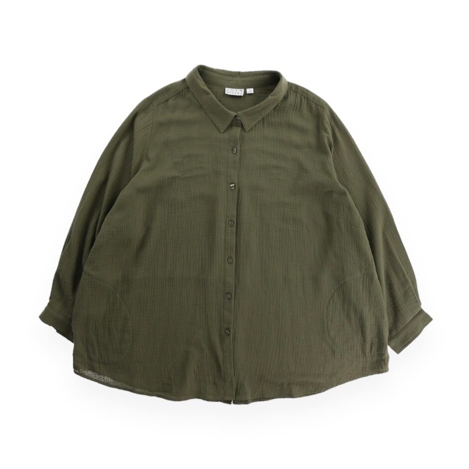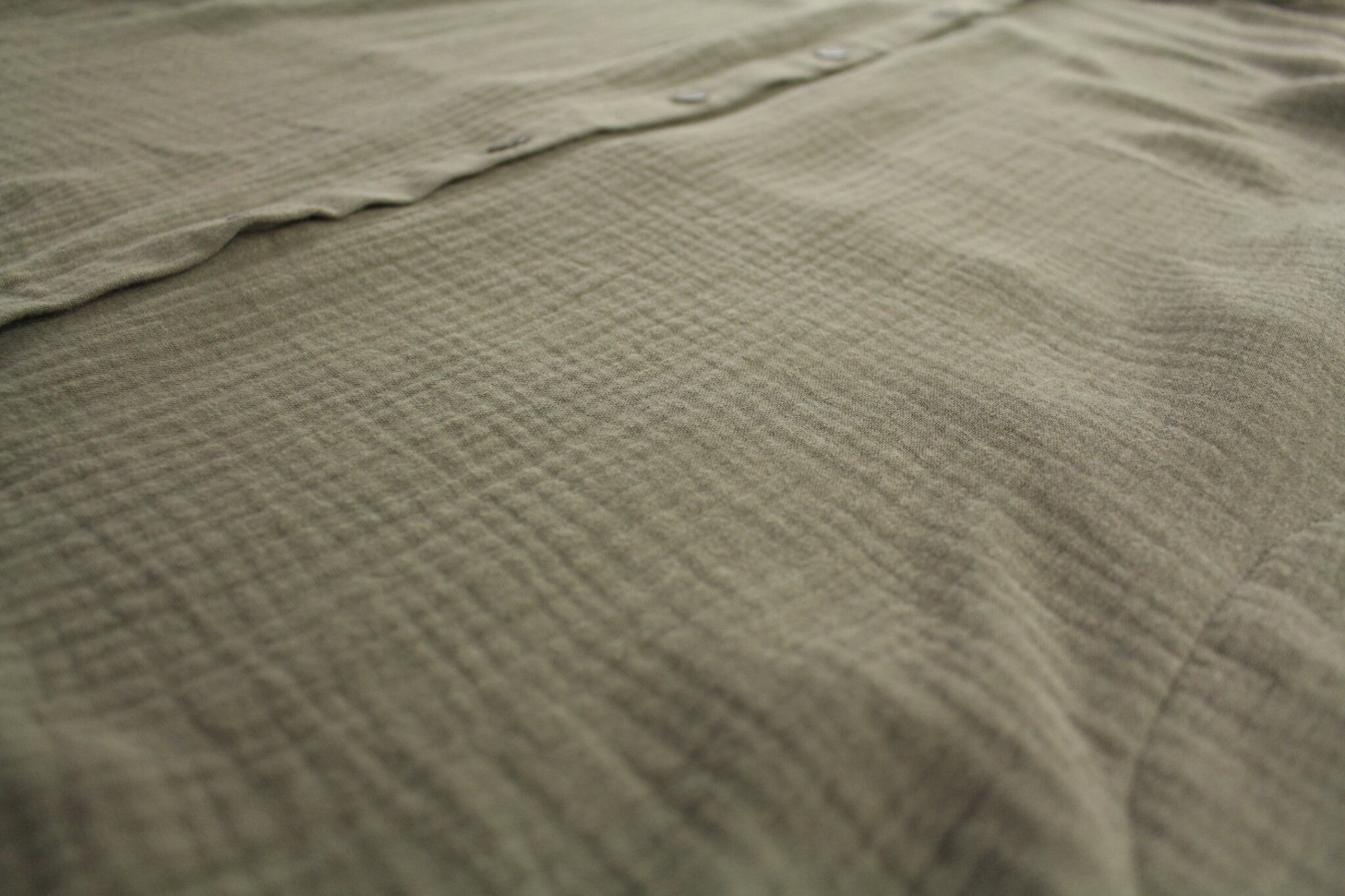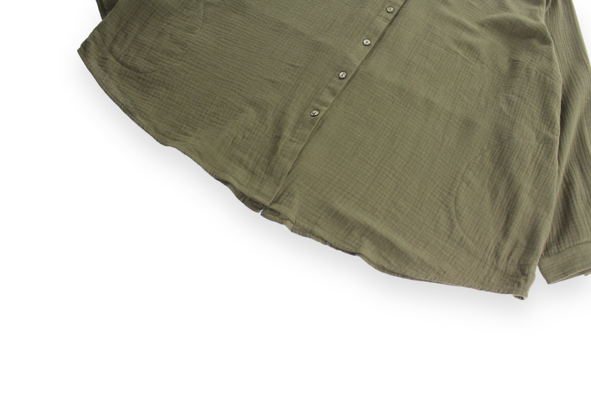 大人っぽいカーキカラーにガーゼのようなフワッとした肌にサラッと触れるようなファブリック。とても着心地も良い1着です。