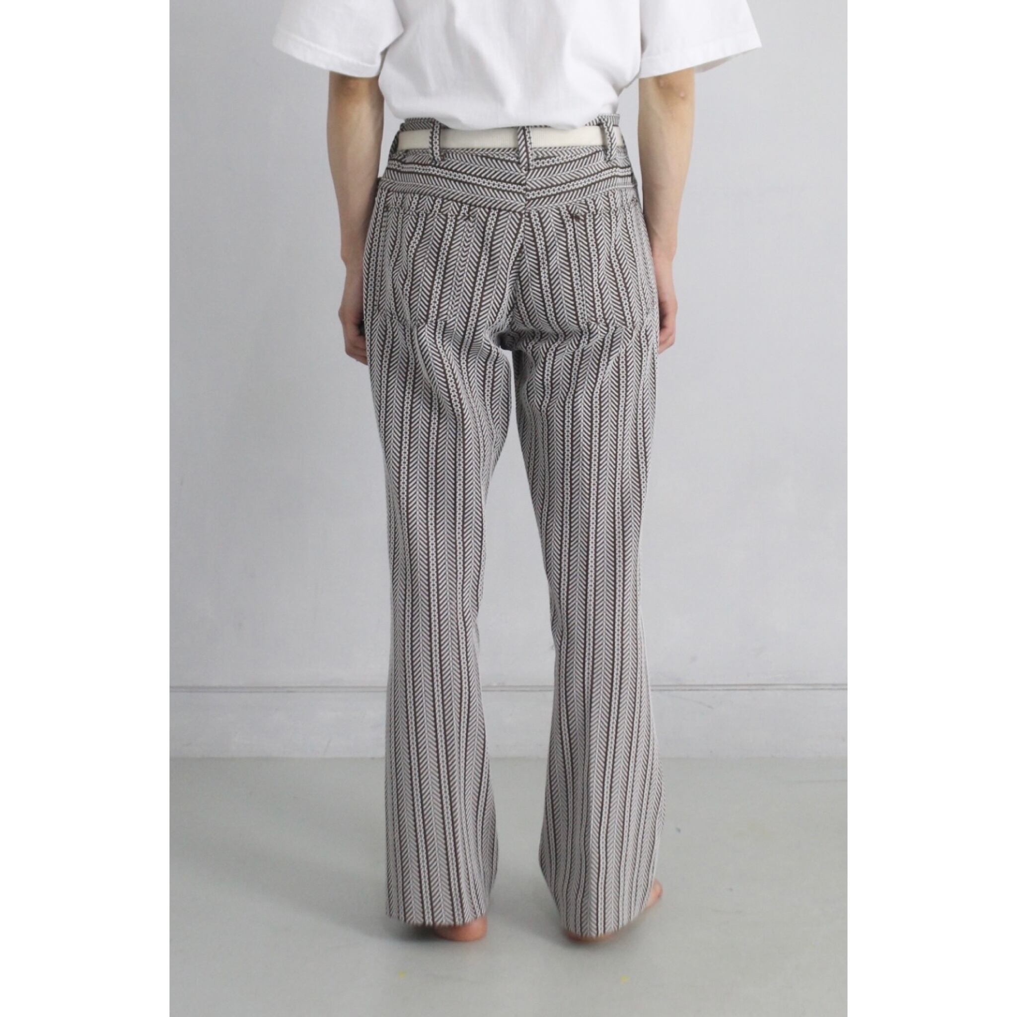 年代特有の織りによって作られた70年代らしい柄感と配色の良さ。ホワイトにブラウンはあんまり見ない配色ですし、ヴィンテージらしい雰囲気がありながら今っぽくモダンに履ける逸品かなぁと。