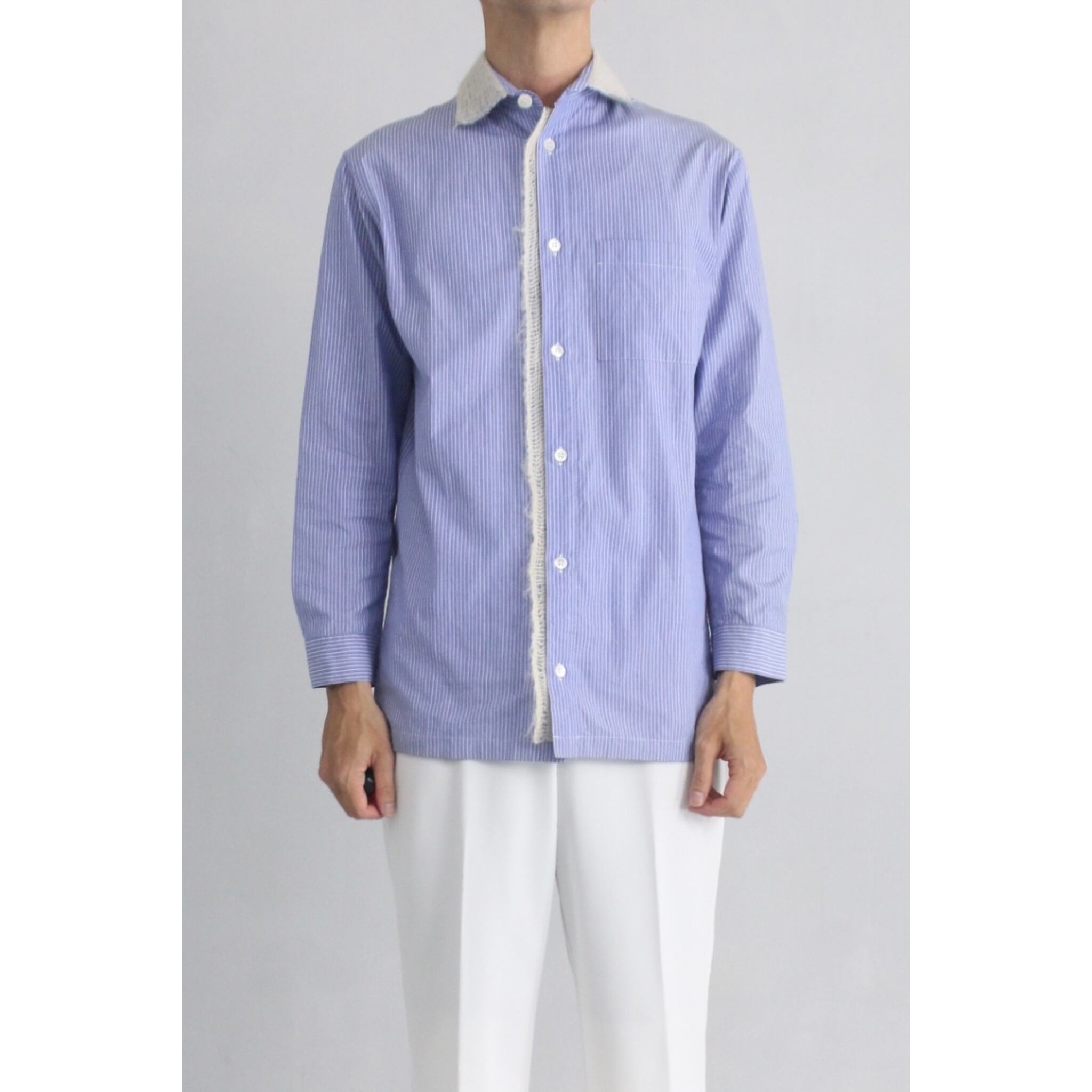 【OTSU】"Y's" Yohji Yamamoto wool swiching design stripe shirt -8190-