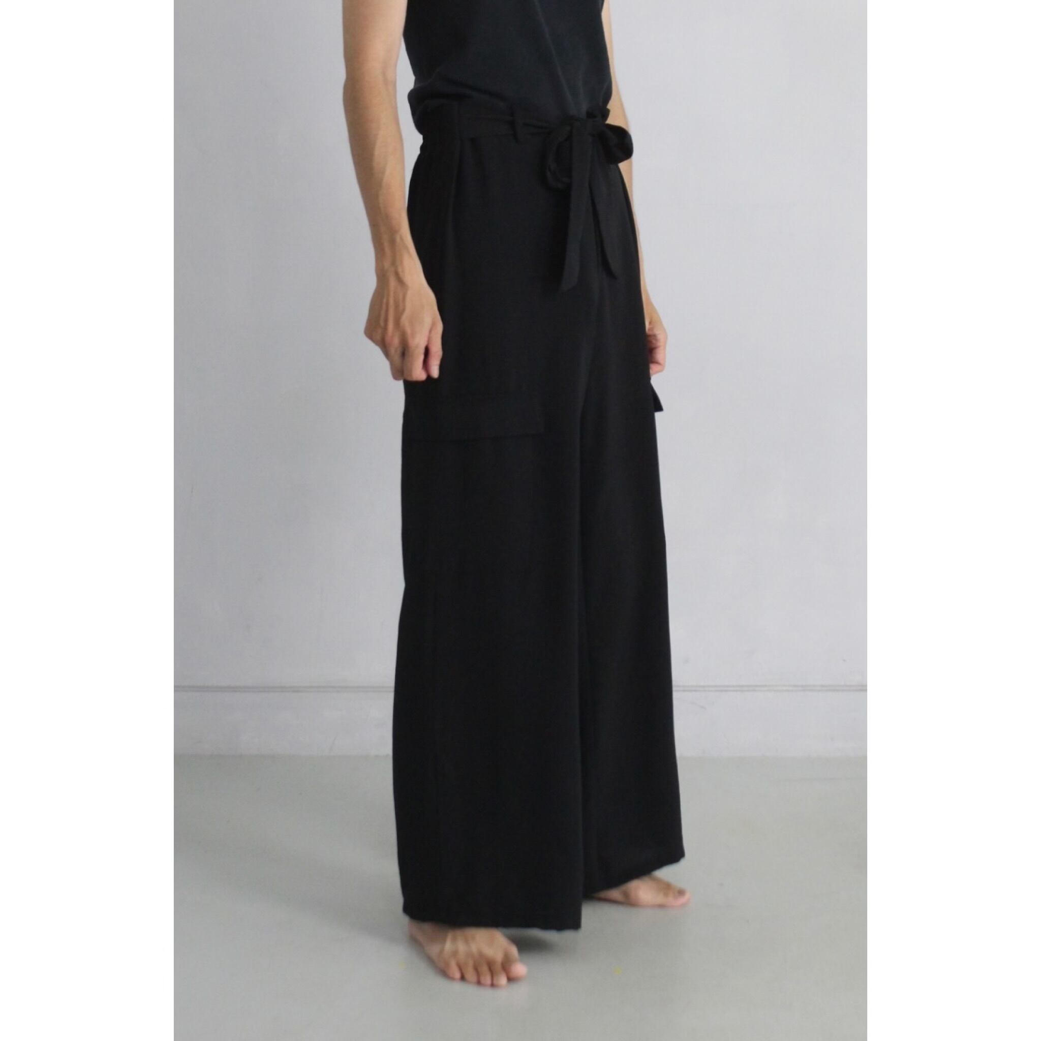 とろっとした垂れるような揺れ感が魅力のワイドパンツ。