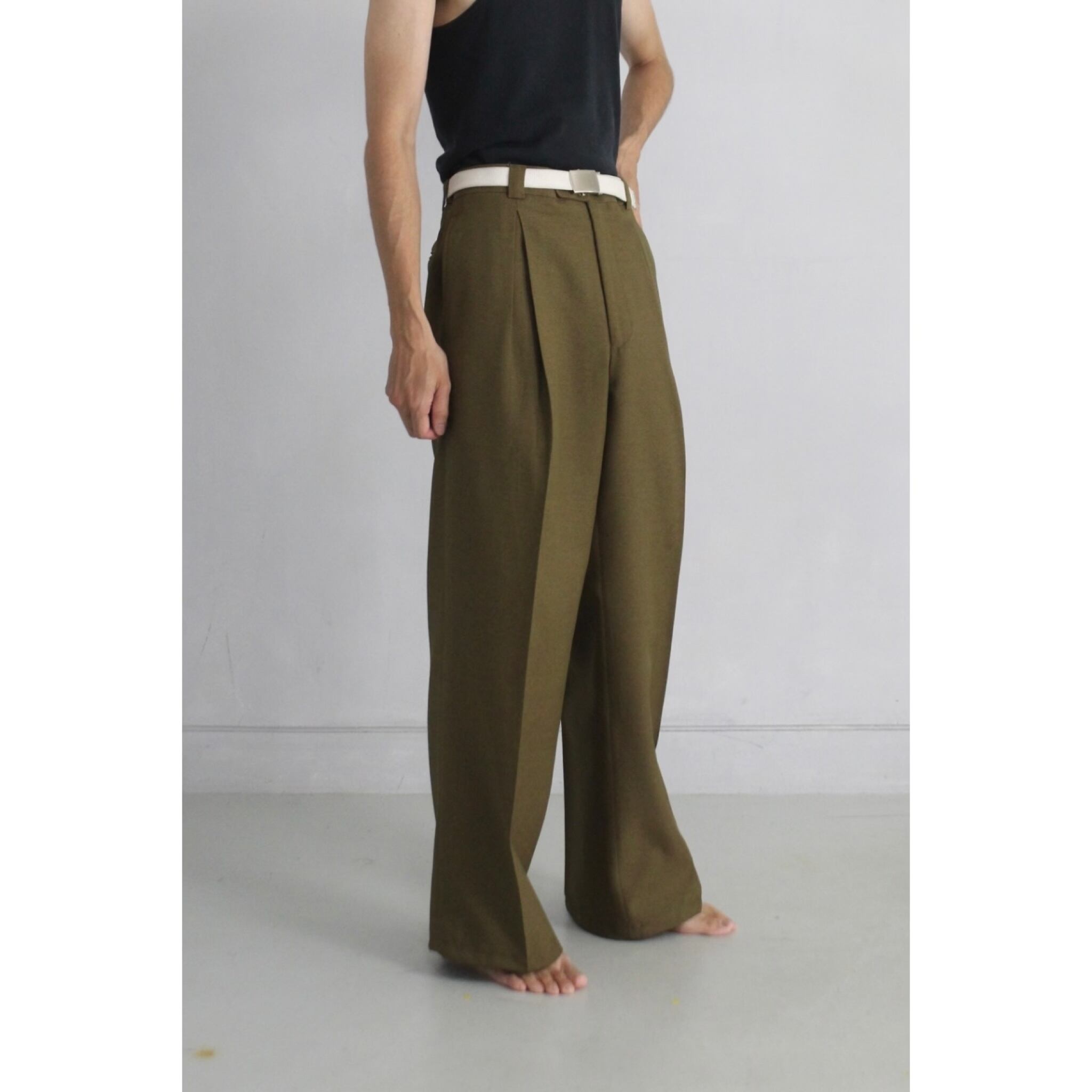 【OTSU】straight silhouette poly gabardine 1-tuck wide slacks -8238-