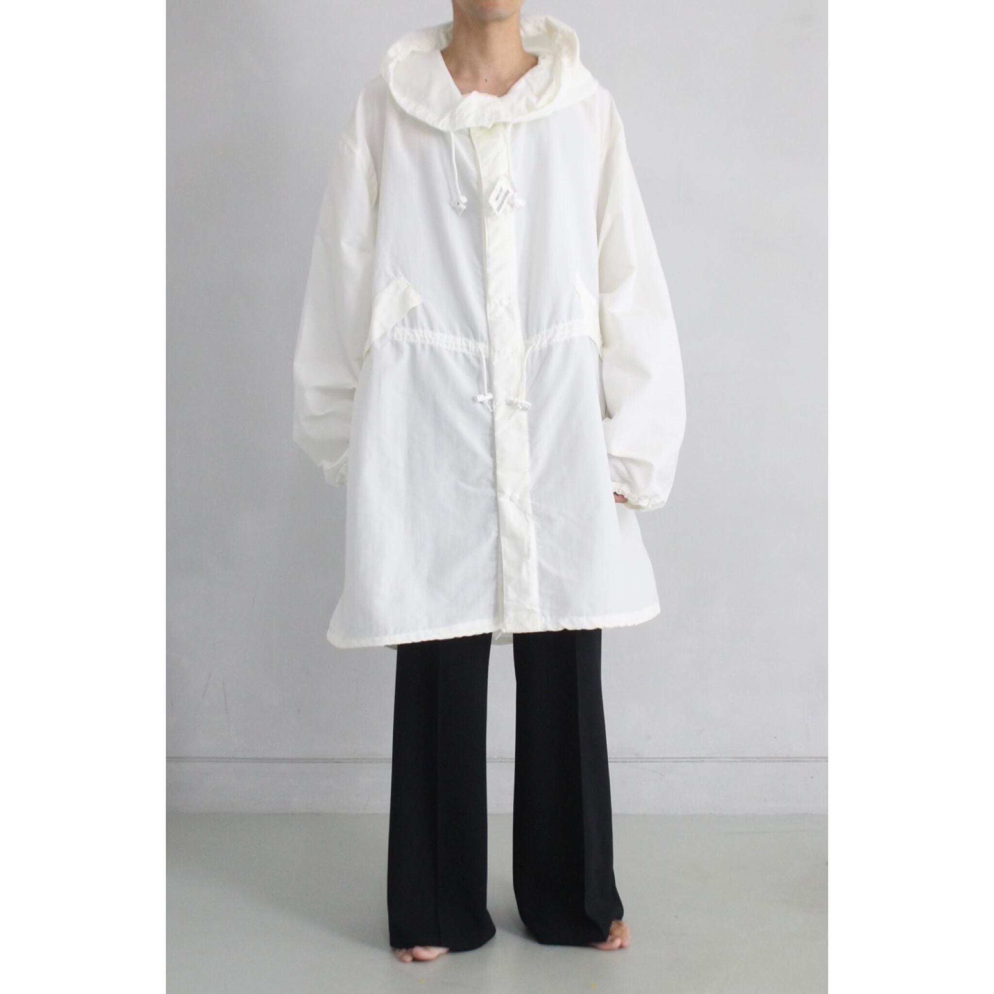 近年物にしかない首元スナップボタンにウエストのドローコードでのシルエット変更可能なところや大きめなフードも印象強い。