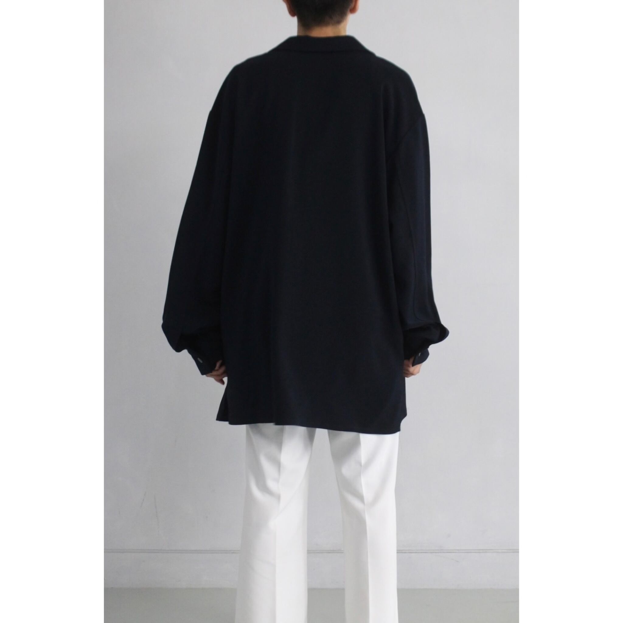 【COU】heavy micro poly fabric open collar shirt jacket -3883-