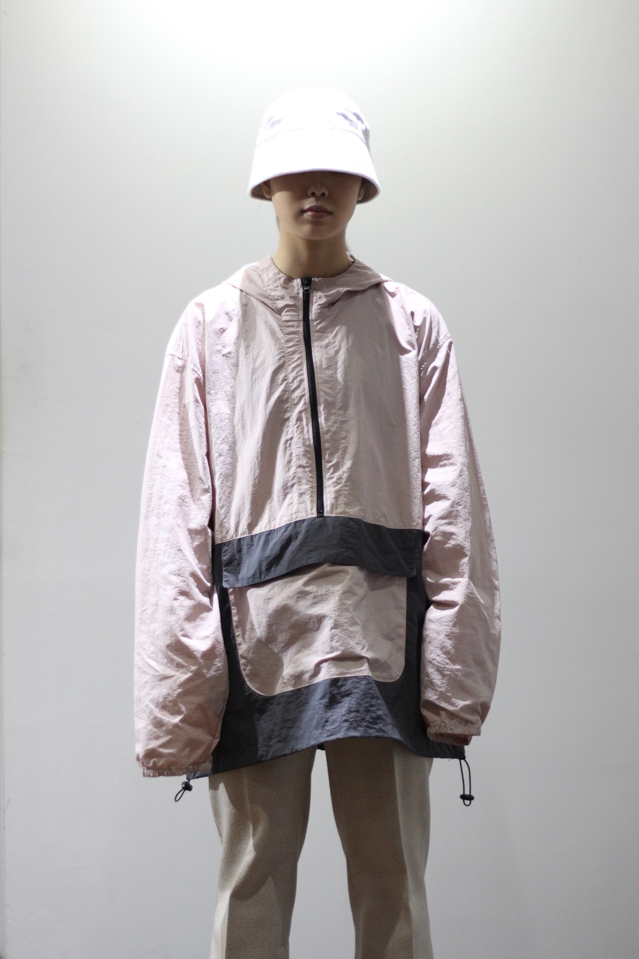 【COU】1990s light pink × gray bi-color drawstring design nylon anorak parka -3908-
