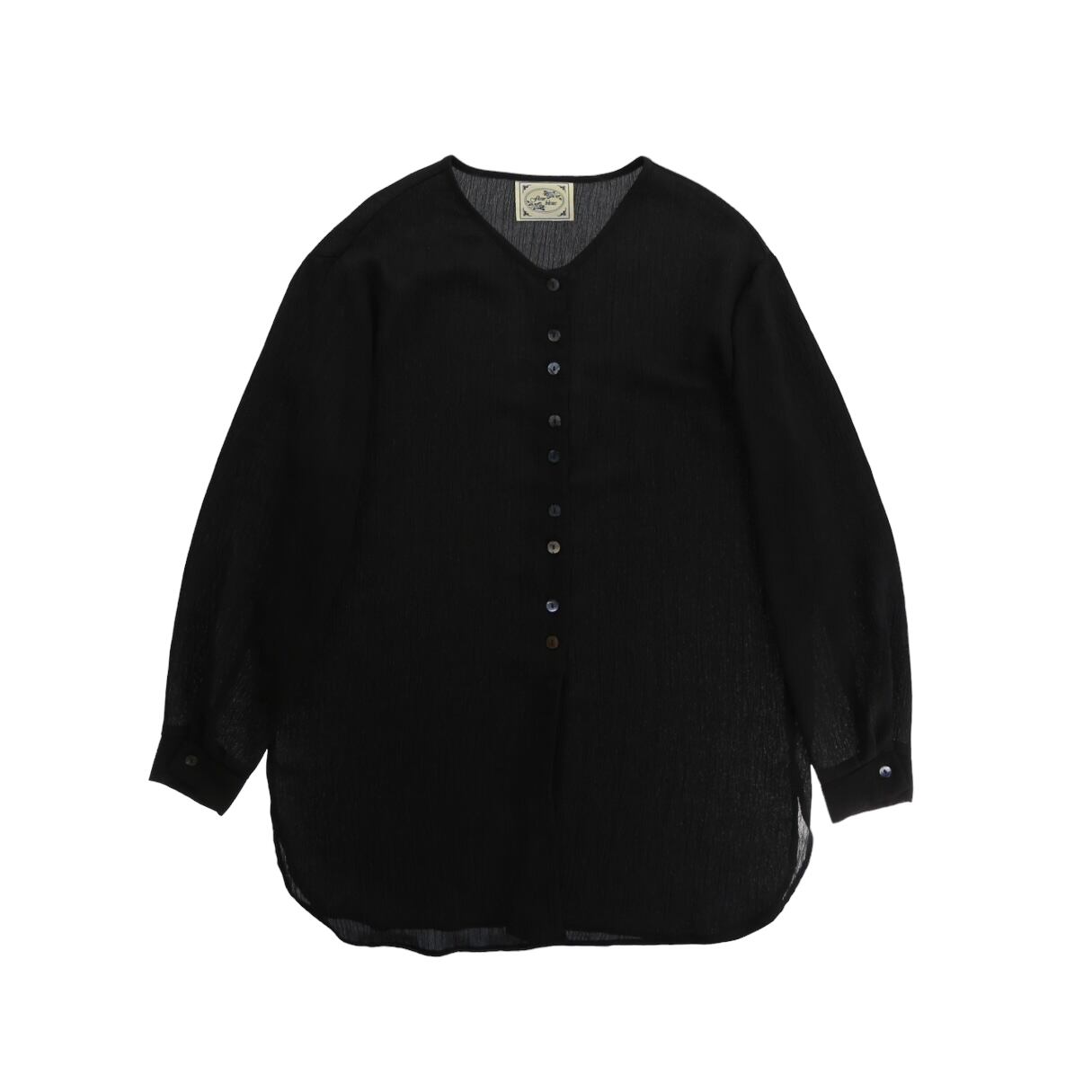 【OTSU】botanical pattern 9-button design no collar shirt-8256-
