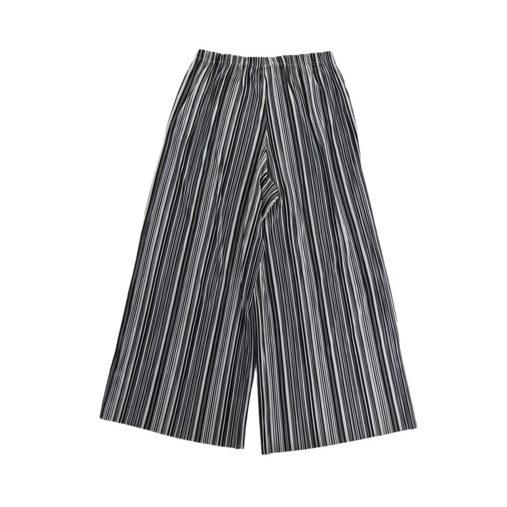 【OTSU】"hakama" silhouette stripe pattern pleats wide easy pants -8319-