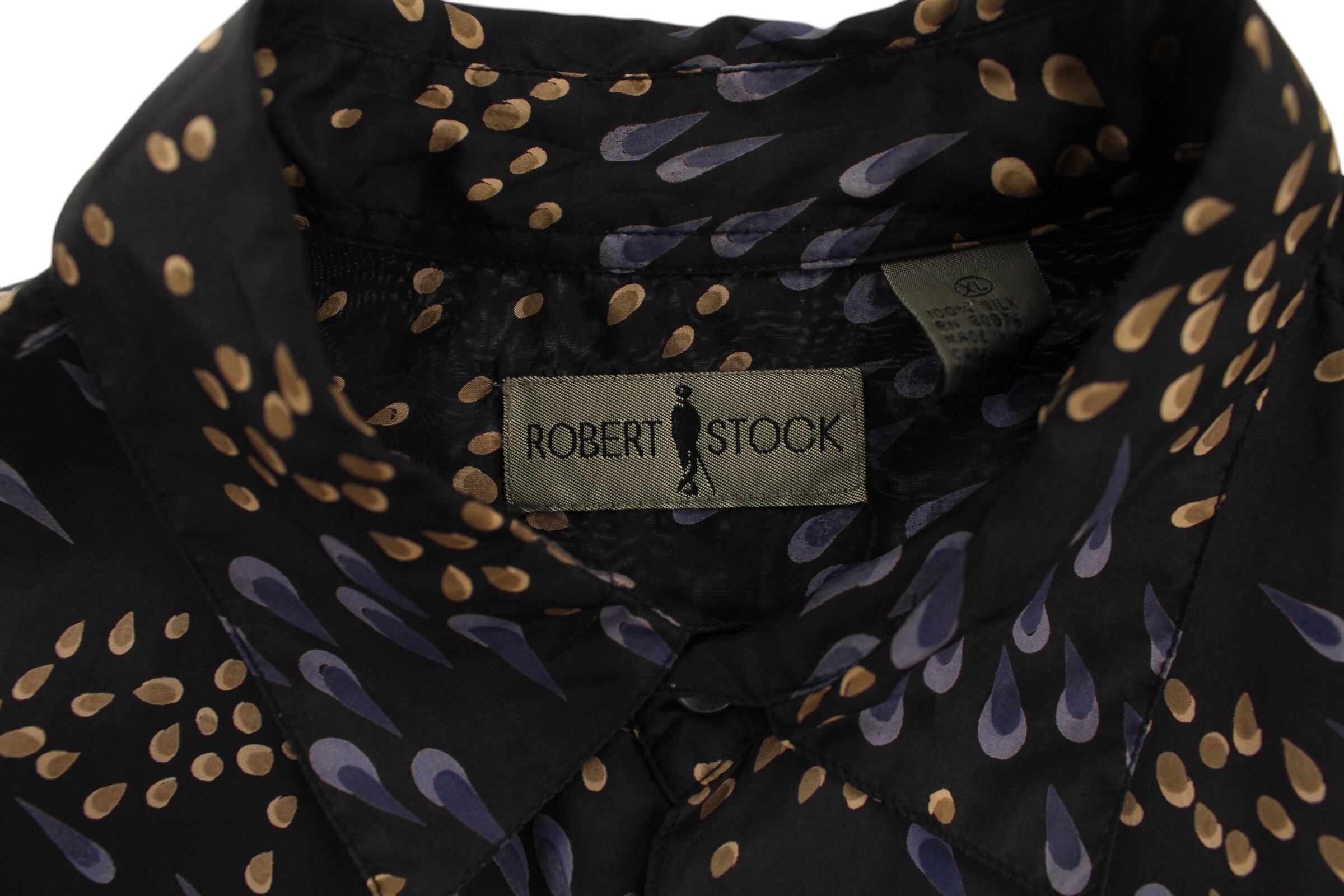 【OTSU】1990's "ROBERT STOCK" 100% silk art pattern dress shirt -12741-