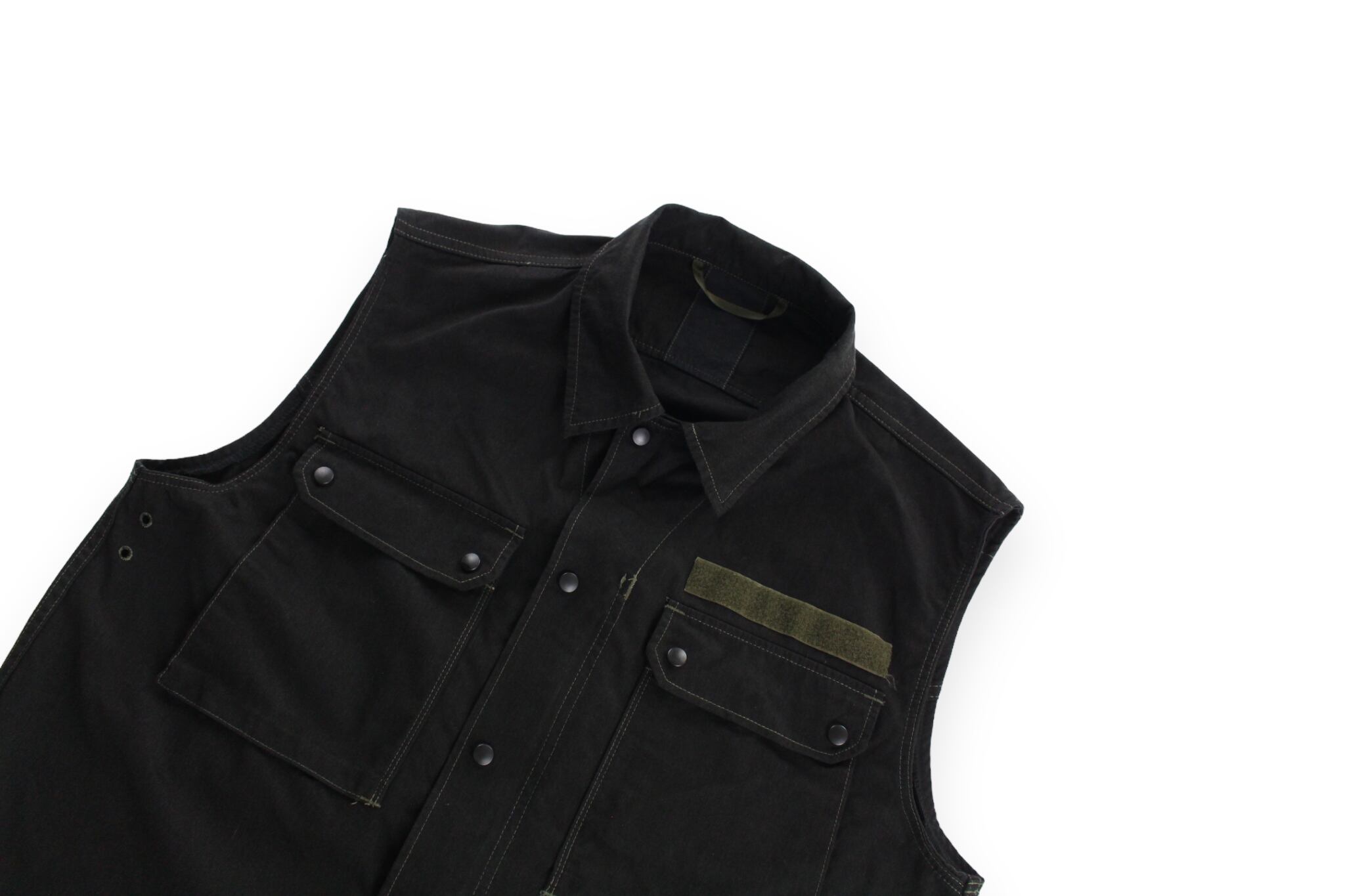 こちらはフィールドジャケットの袖を切り落としベストに仕上げたリメイク品。元々肩にエポレットが付くのですが、リメイクの際に取られていると思います。