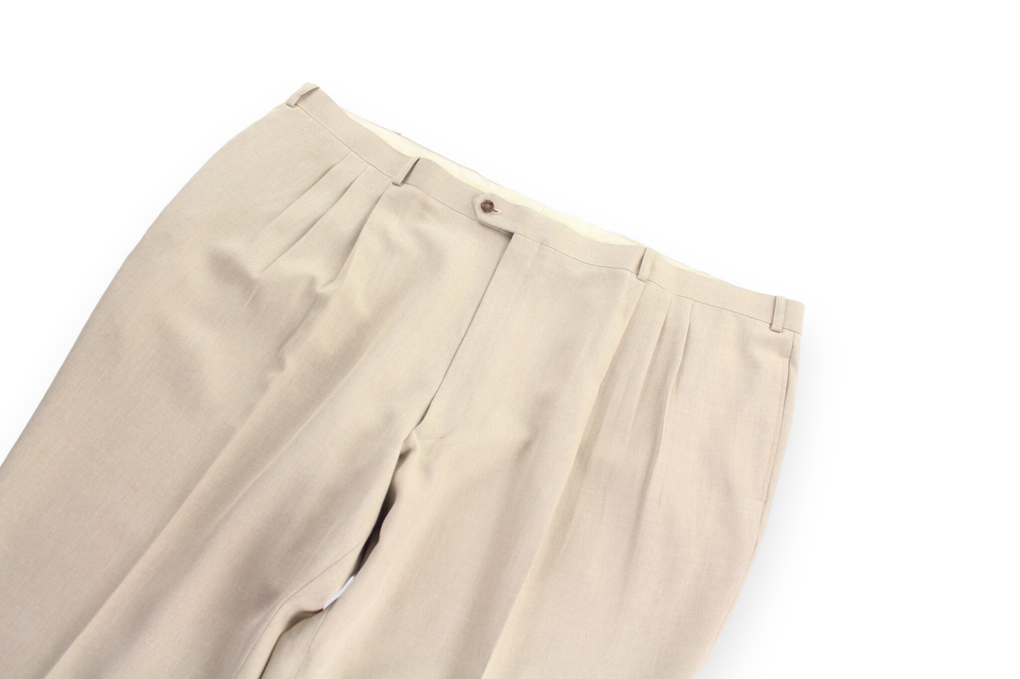某ブランドのような佇まいですが、柔らかいライトベージュカラーにモダンなとろみのある垂れるようなスーパーワイドスラックスは古着らしさがあって良いなと思います。