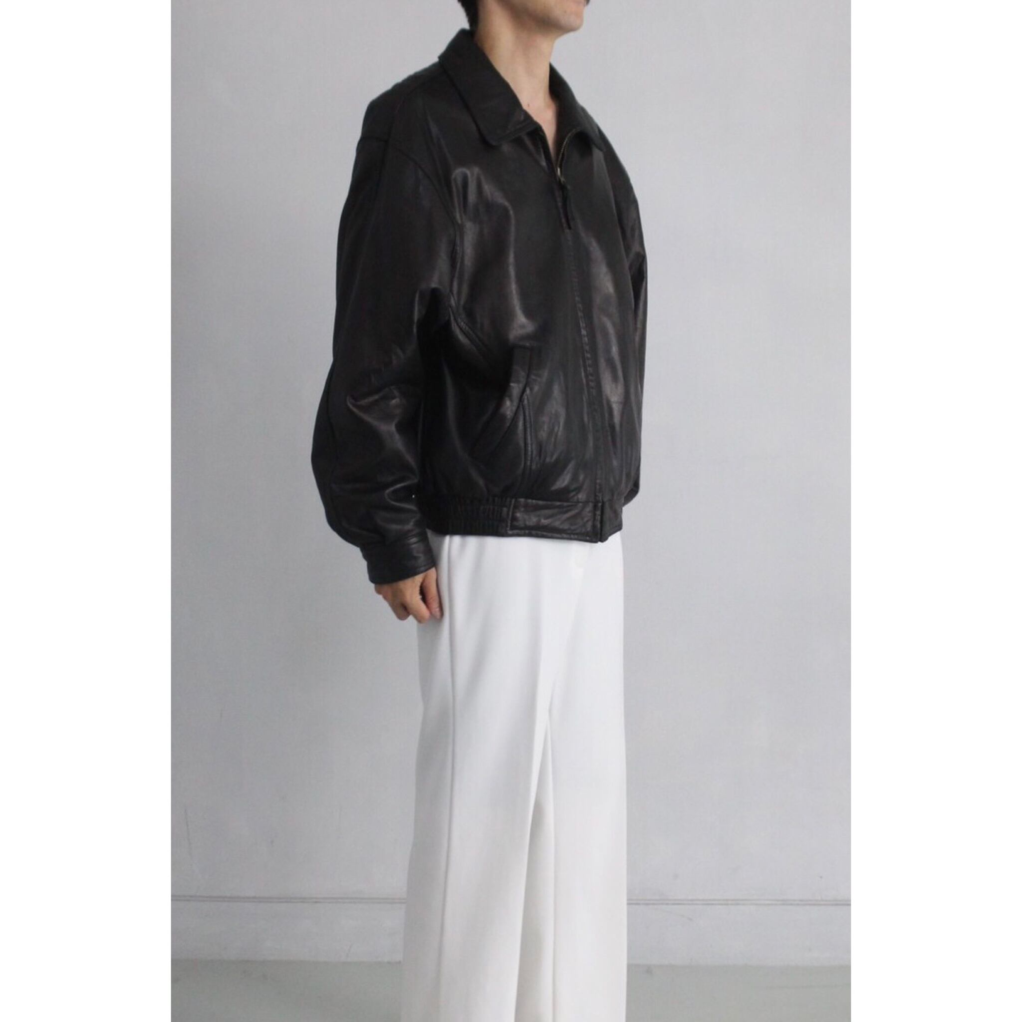 お探しの方の多いブラックカラーでスイングトップ型のレザージャケット。