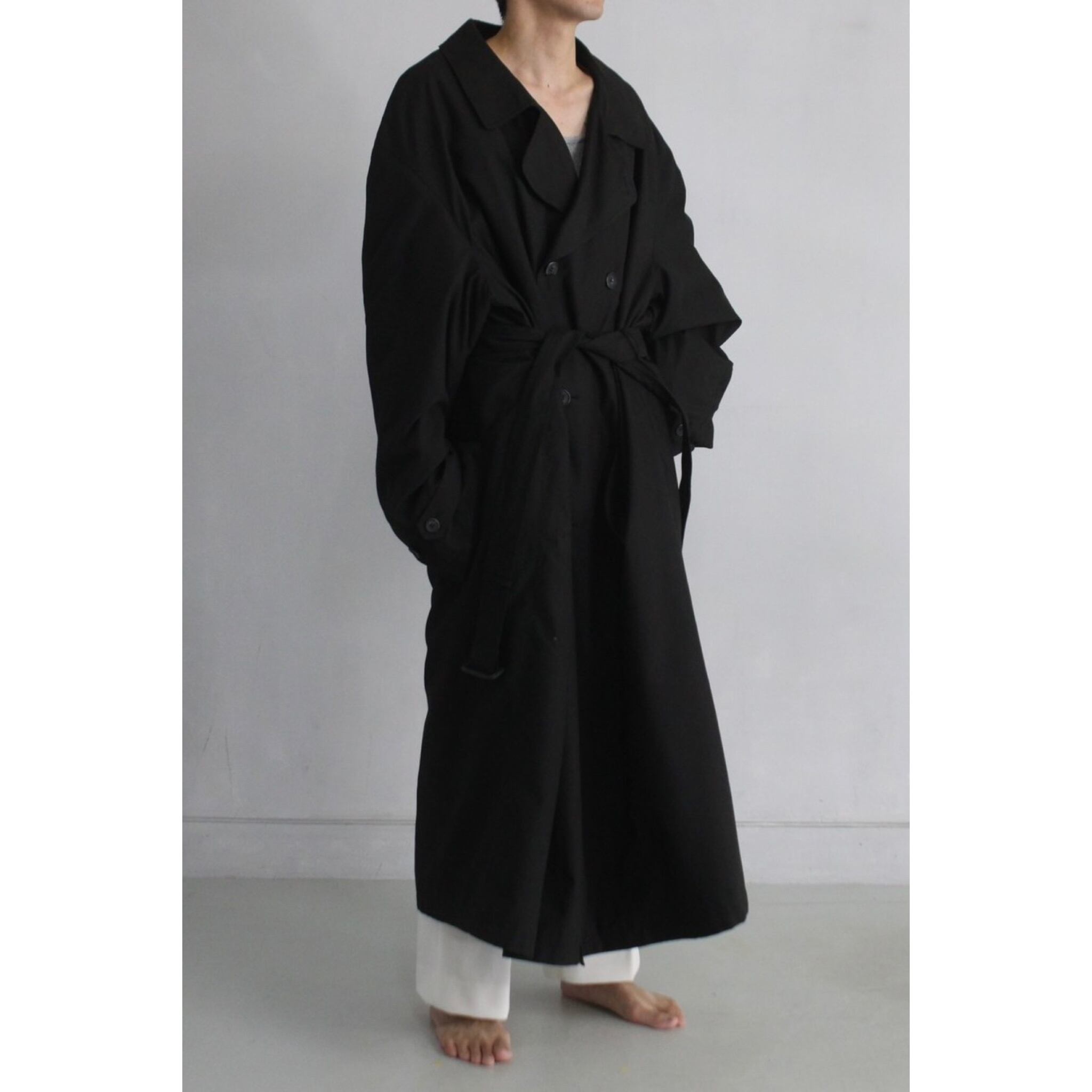 【COU】1990s super big silhouette maxi length smooth belted trench coat -3972-