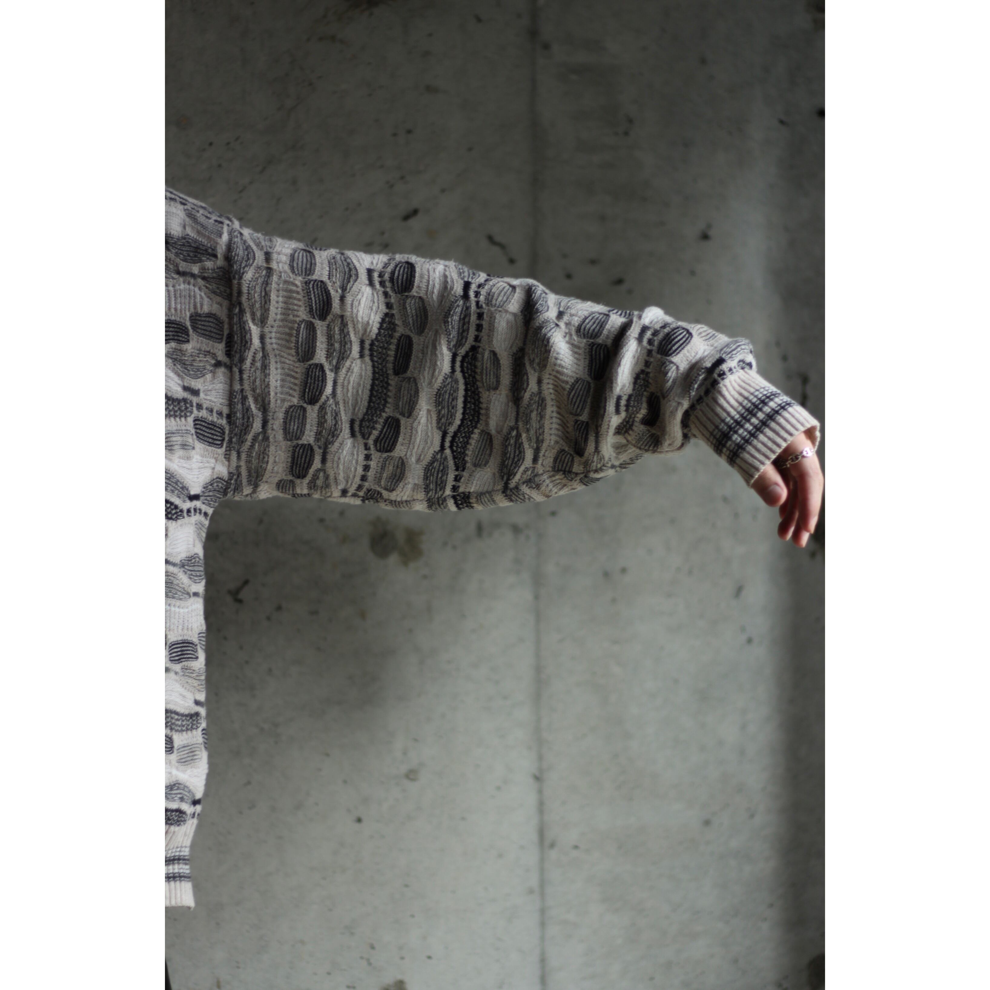【FIFTY-FIFTY】1990s vintage ALFANI all-over pattern 3D knit cardigan -8087-
