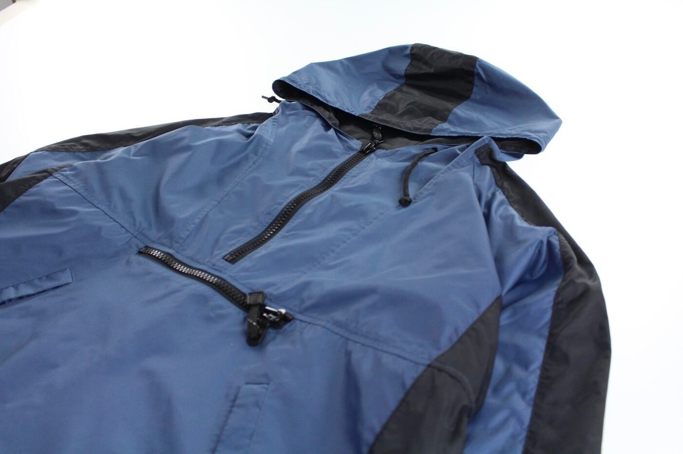 古着市場では名作と位置付けられた王道なアイテムです。幅広い季節で着用できる薄手で滑らかなナイロン素材でガバッと着れるアノラック仕様。身頃ポケット、各所ドローコード完備なディテール。