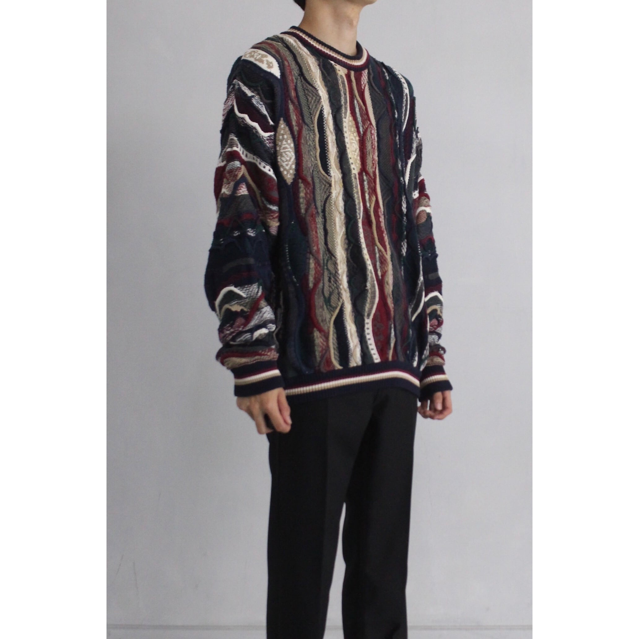 【OTSU】1990's traders all-over pattern 3D cotton knit sweater -8131-
