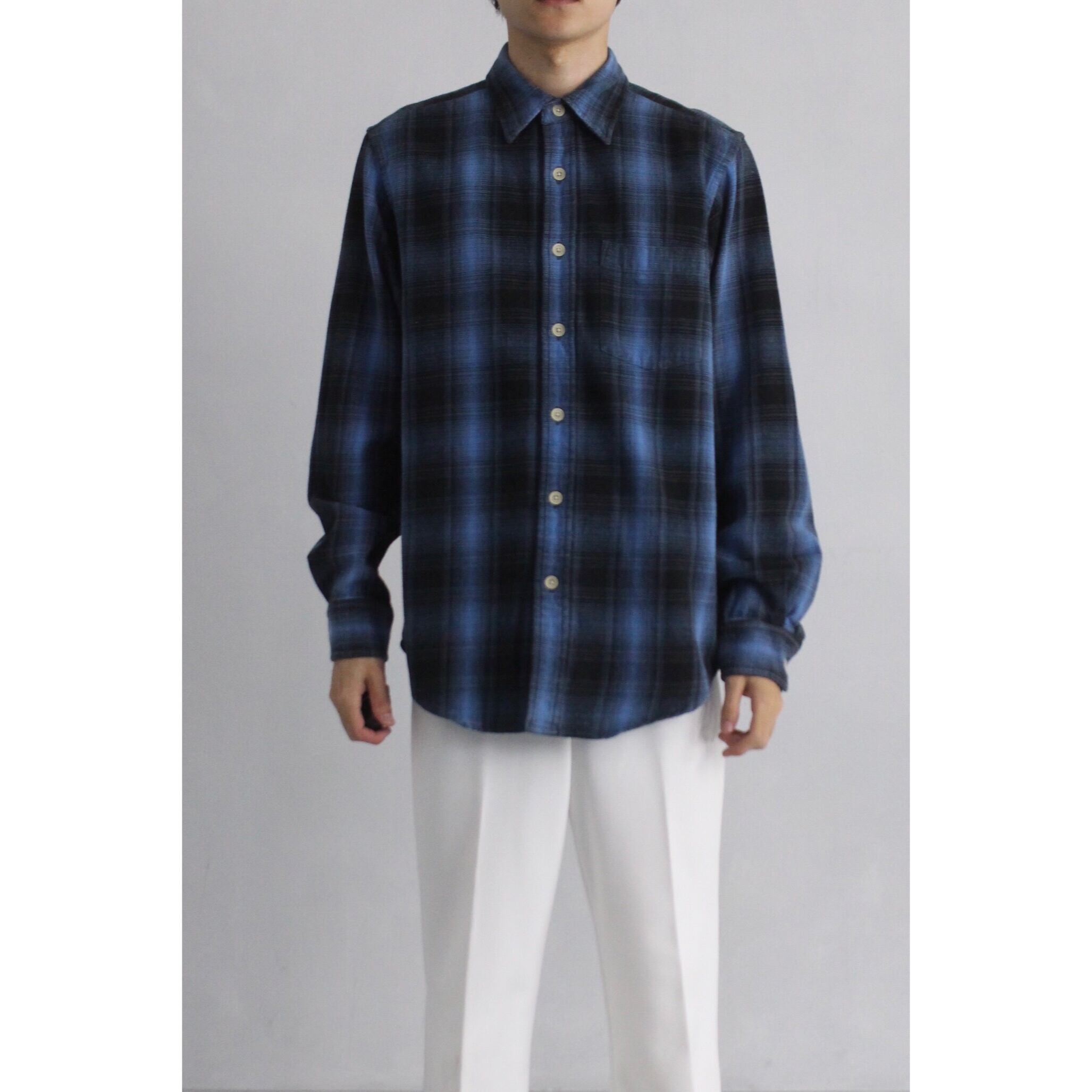 【FIFTY-FIFTY】1990s vintage old GAP black × blue ombre check shirt -8134-