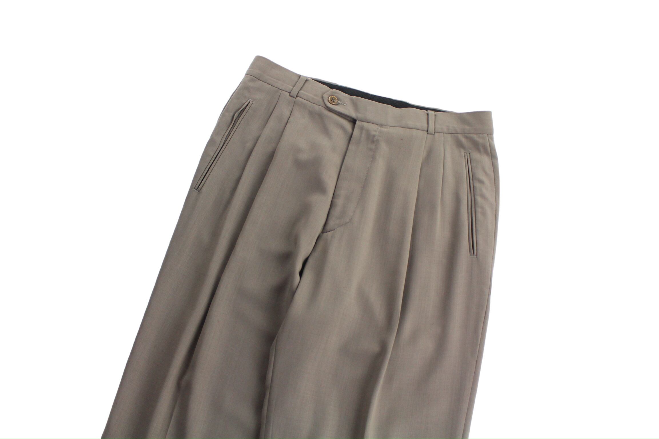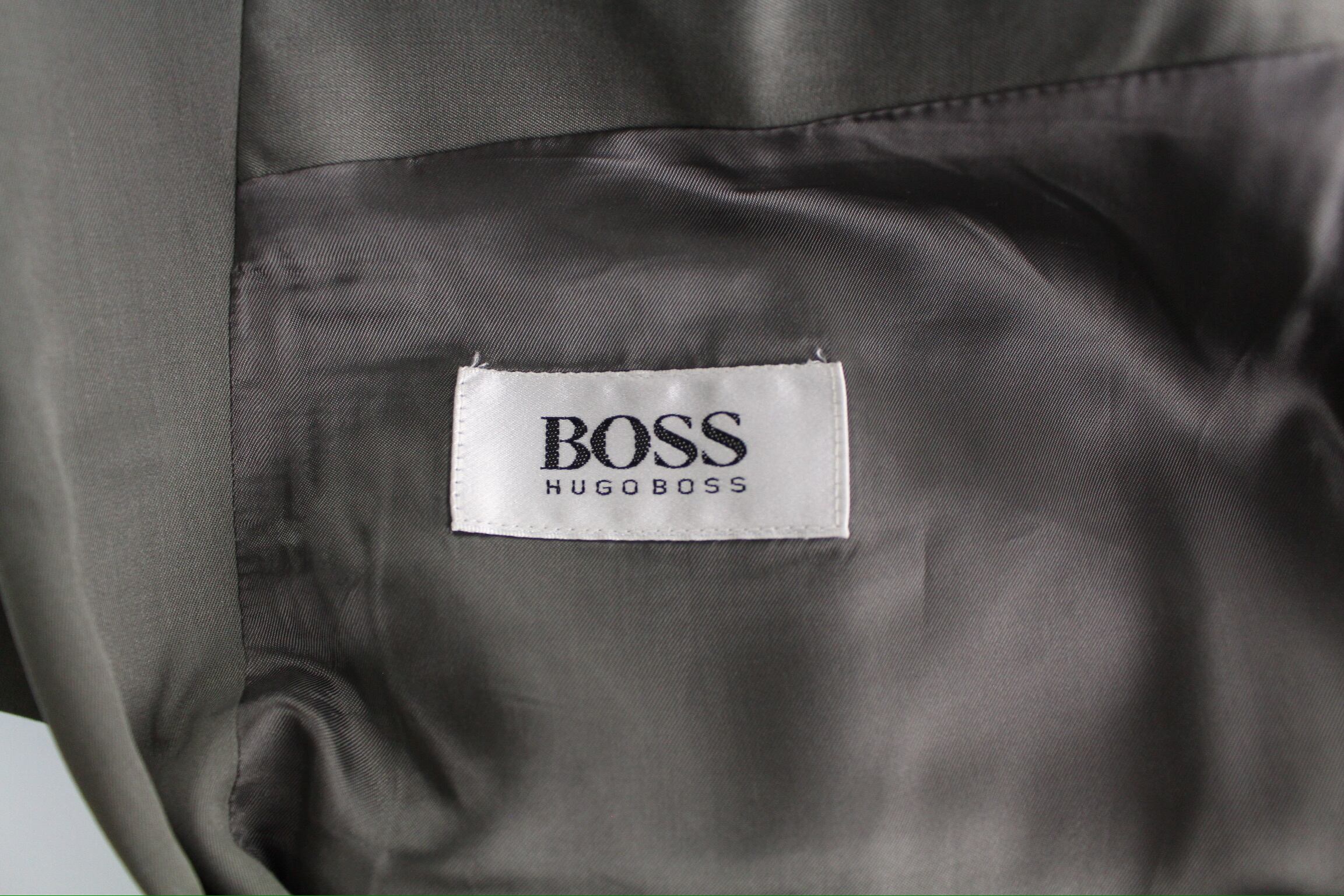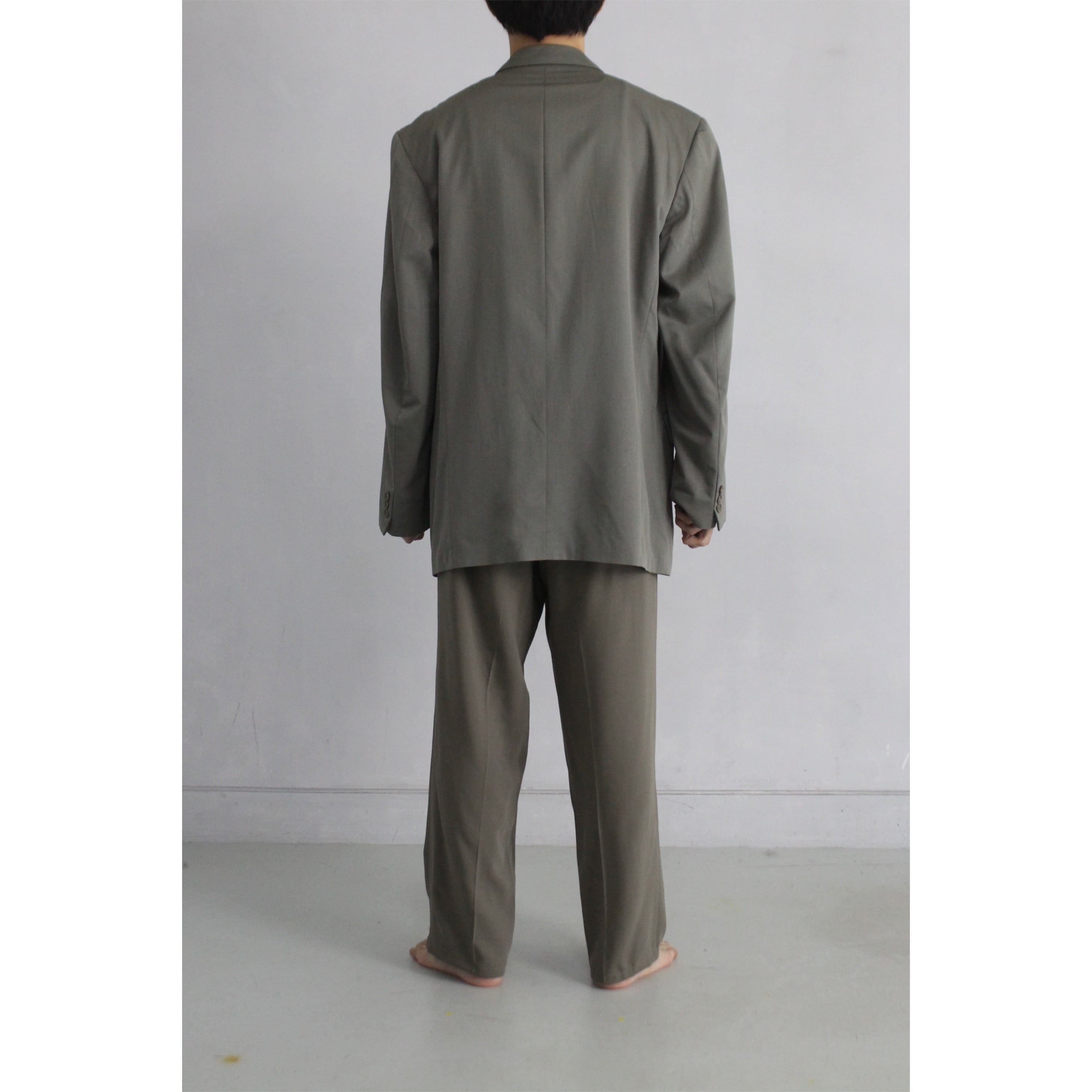 【OTSU】1990's HUGO BOSS silk blend 2-piece suits set up / double breast tailored jacket & 2-tuck wide slacks made in WEST GERMANY -8587-