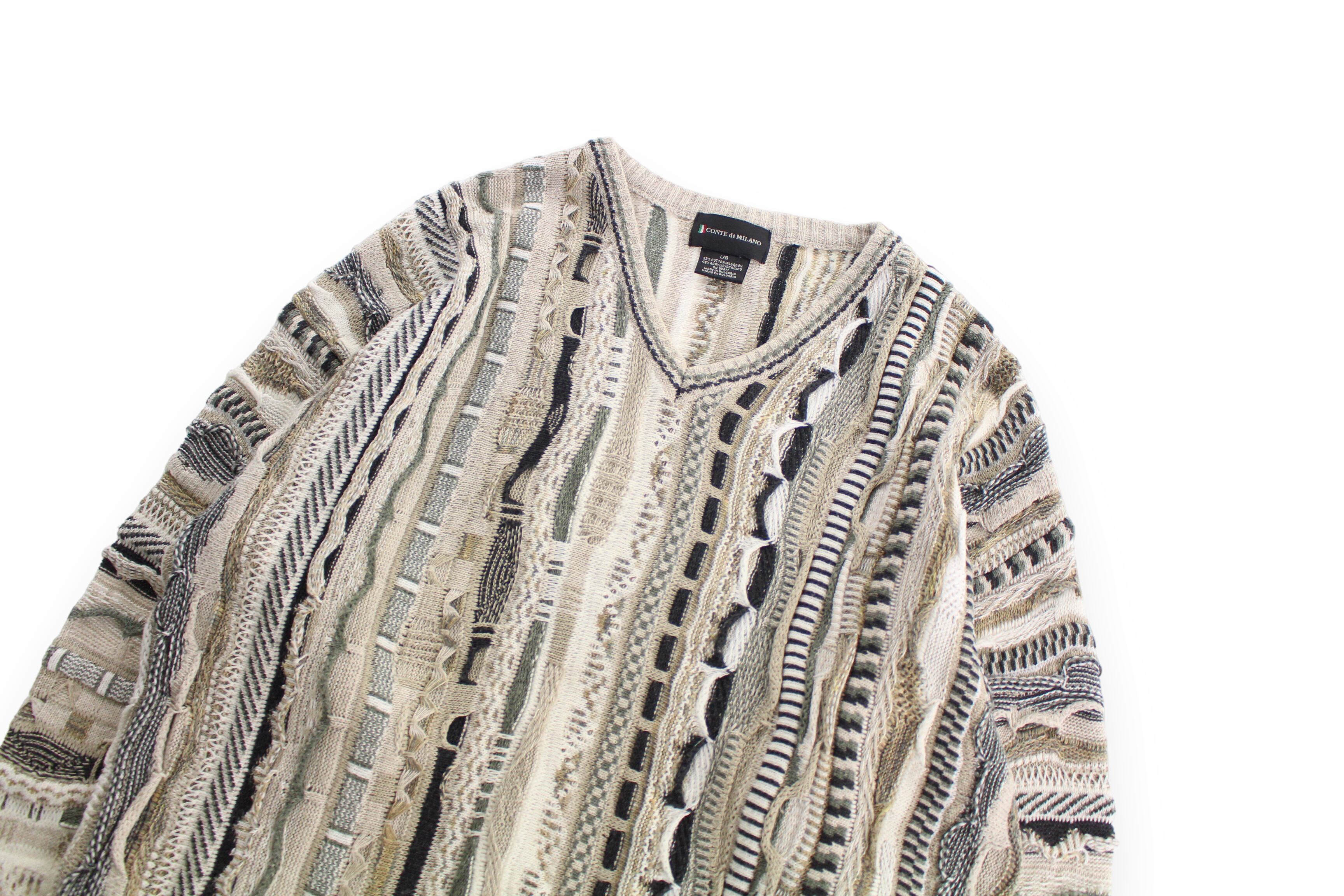 【COU】1990s euro made shallow V-neck 3D design knit sweater -3400-