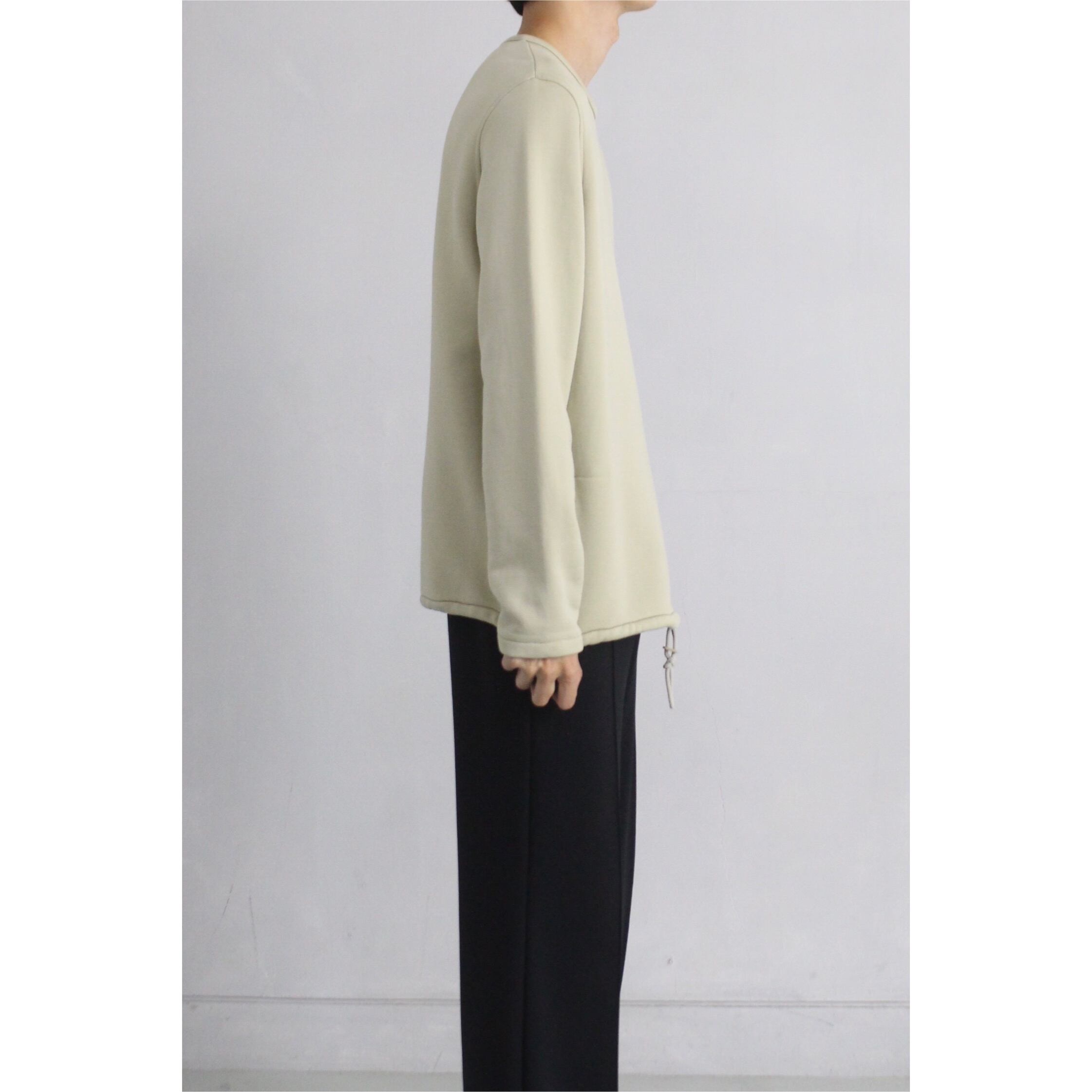 コットン×ナイロン混紡のスウェットライクなほんのり肉厚なしっとり滑らかな生地感で素肌で着てもストレスなく着用可能。スウェット特有の毛羽立ちもなくナイロン素材で光沢をプラスした上品なアイテム。