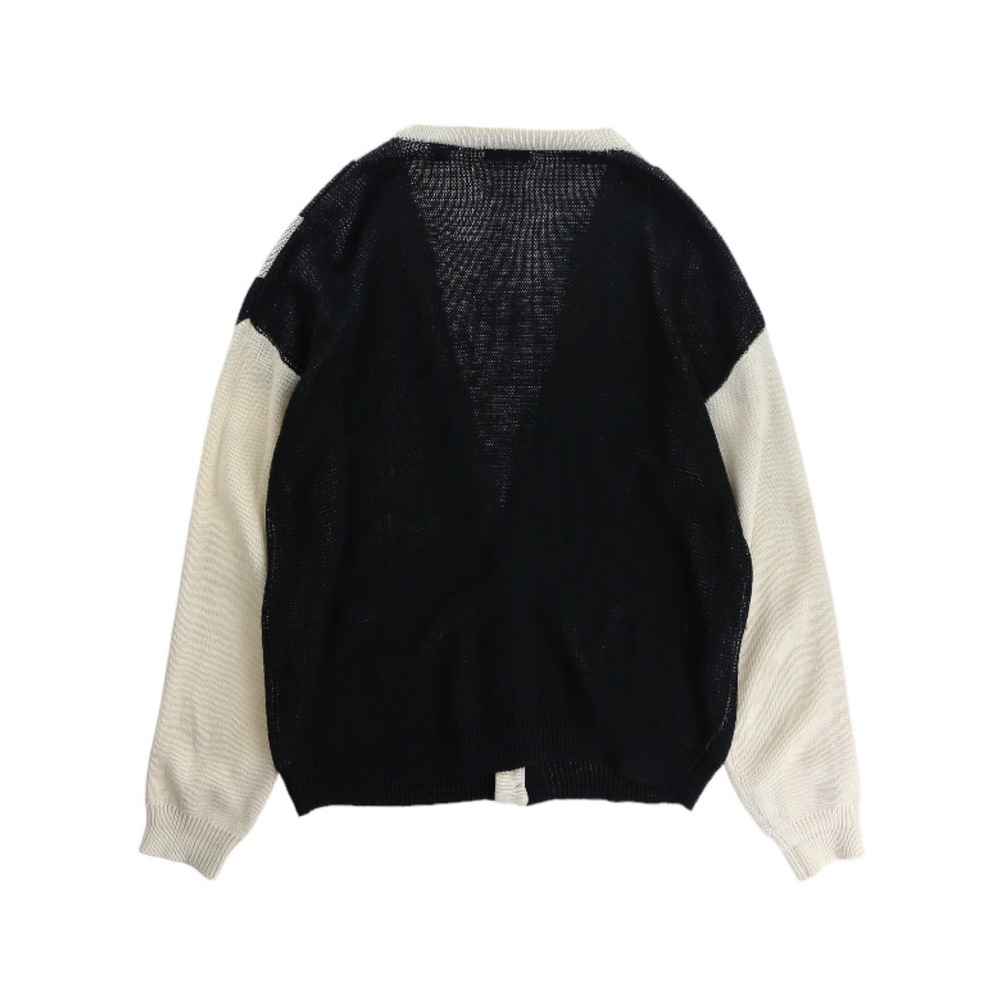 古着だとたま〜に出てくる"KOMAN"。アイテムの作りがオーバーでゆったりしたものが多くこちらのカーディガンもゆったりと着用できるサイズ感。ニットカーディガンはジャストな物が多いのでここまでオーバーサイズなのも稀です。