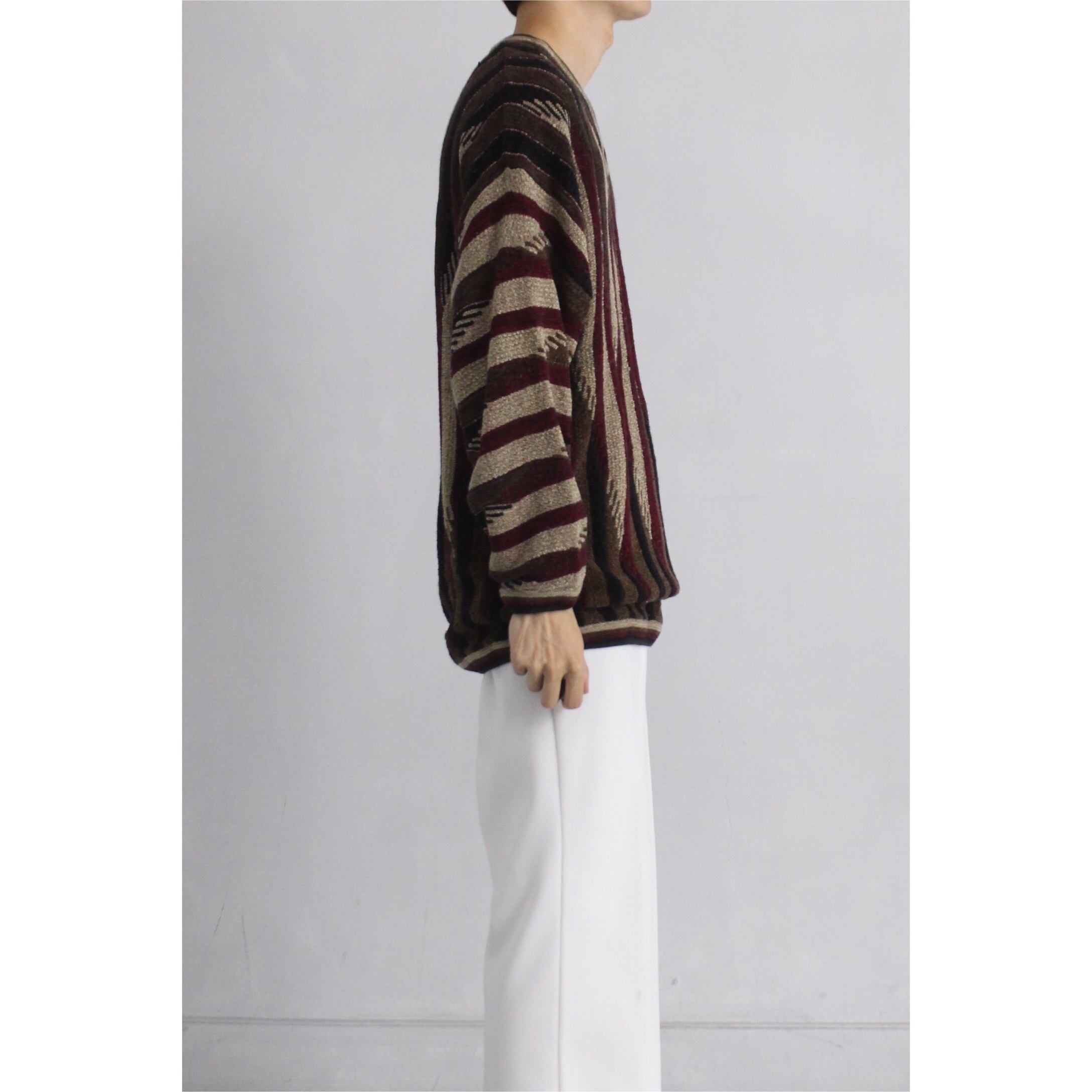 【FIFTY-FIFTY】1990s vintage TUNDRA velours touch all-over pattern Vneck 3D knit sweater -8184-