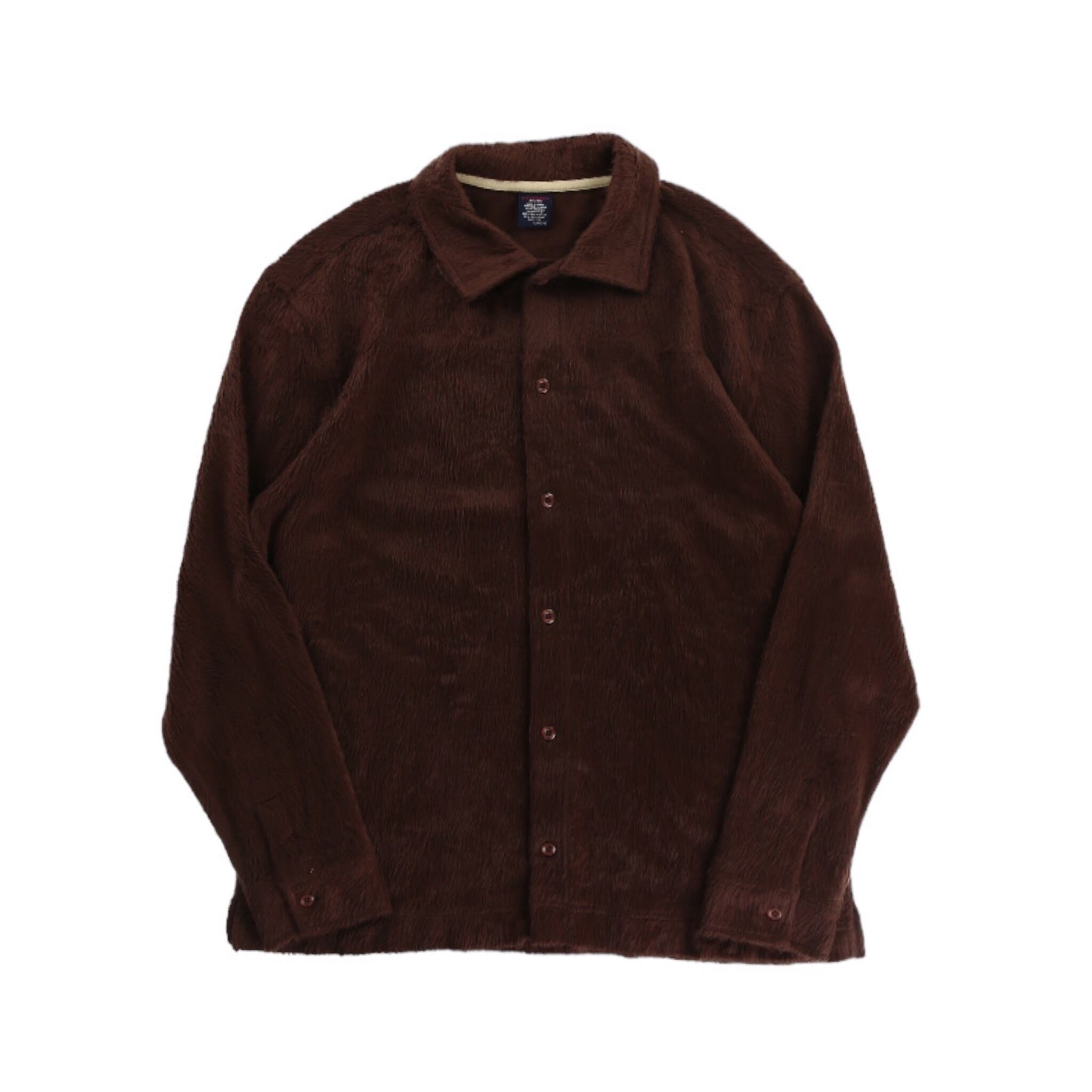 柔らか〜なシャギーに袖を通せば虜になること間違いなし。ブラウンの落ち着いたトーンのカラーリングでやりすぎ感も少なくむしろ上品で大人。感覚的にはコーデュロイと同じ感じでお使い頂けるかと☺︎通常のシャツより肉厚なので秋冬に即戦力ですし,春先には羽織りとしても◎