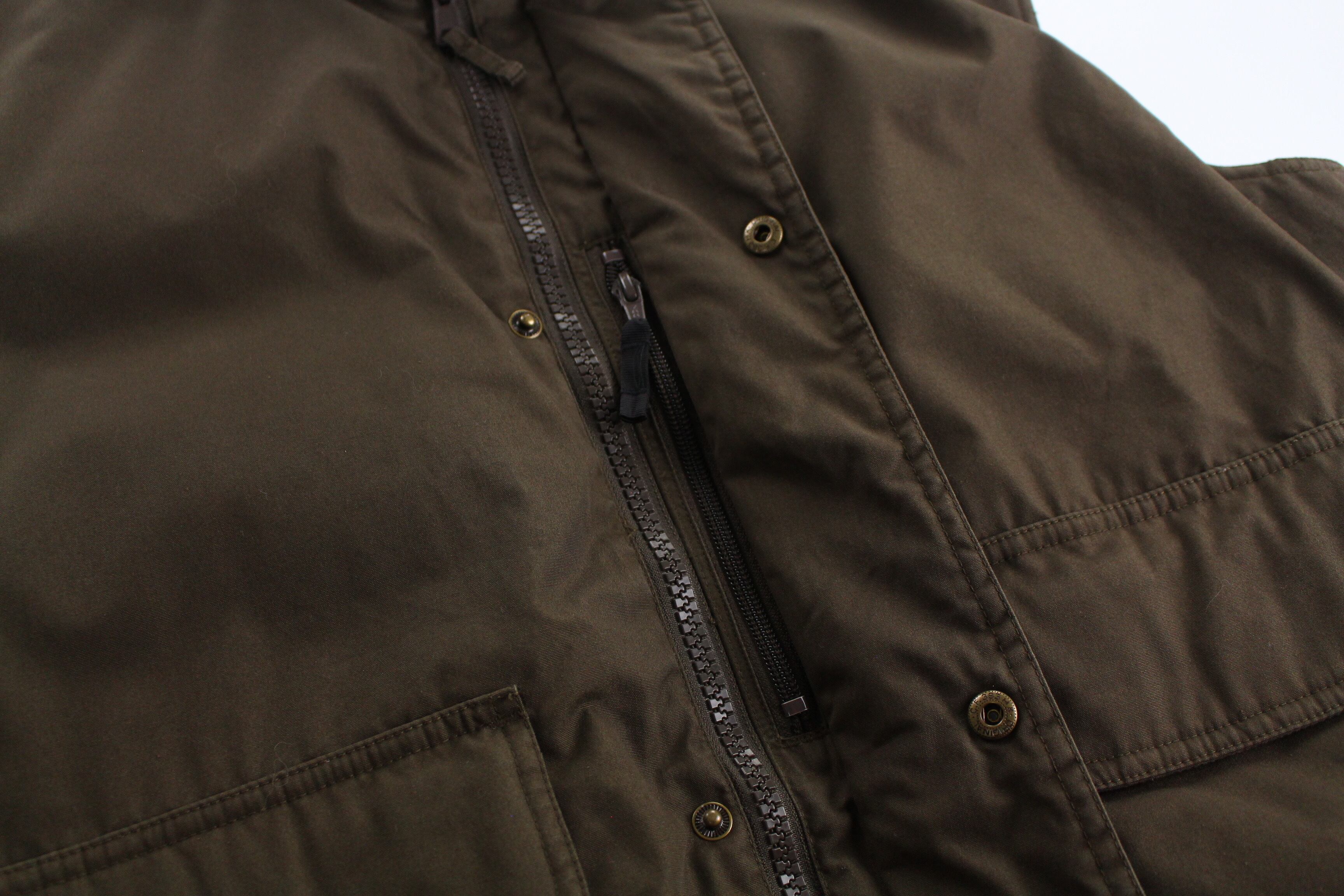 フロントはスナップボタンとジップアップの二重構造にフラップポケットとサイドからアクセスできるハンドポケット完備。