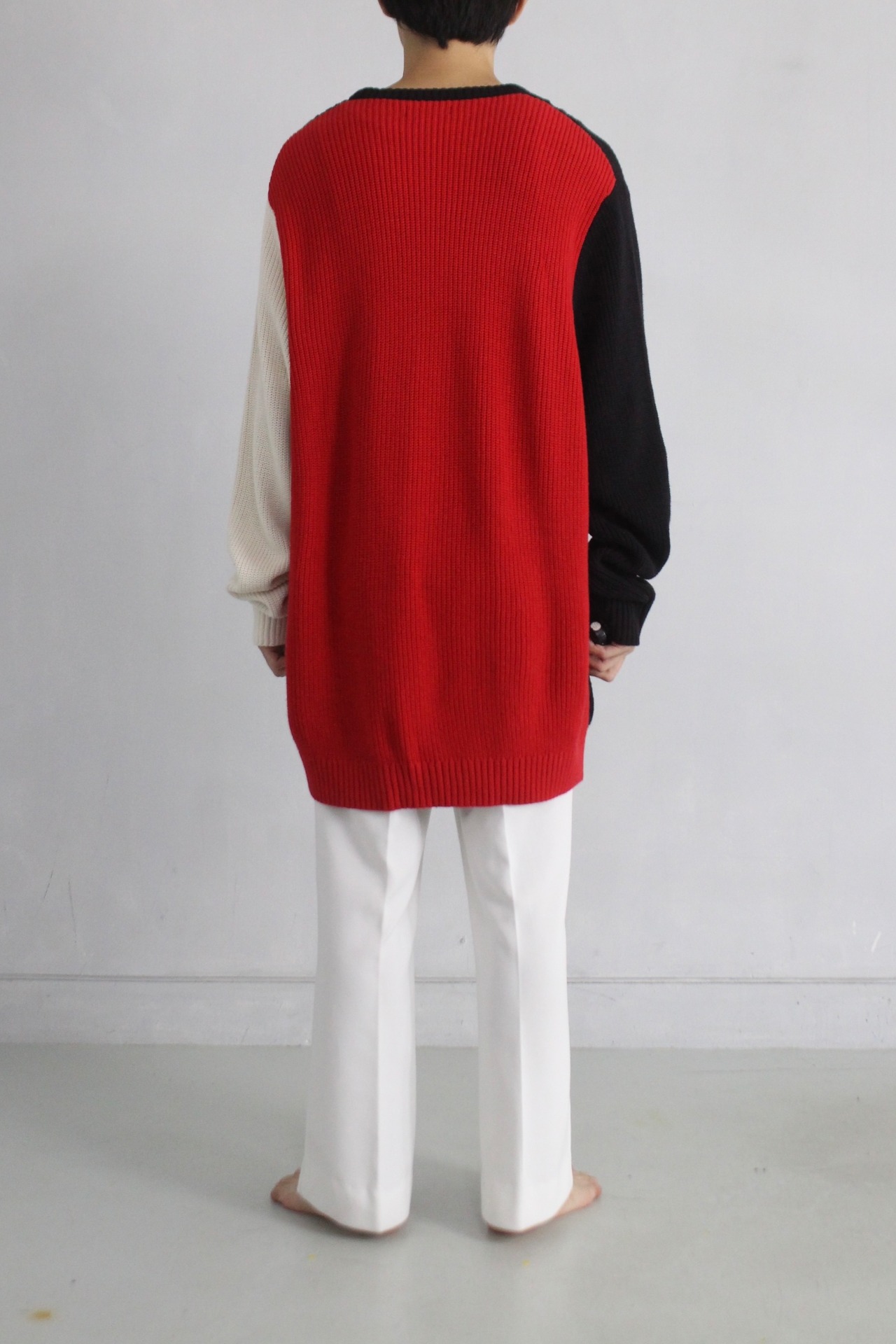 【OTSU】swiching design cotton knit sweater oversize -8689-