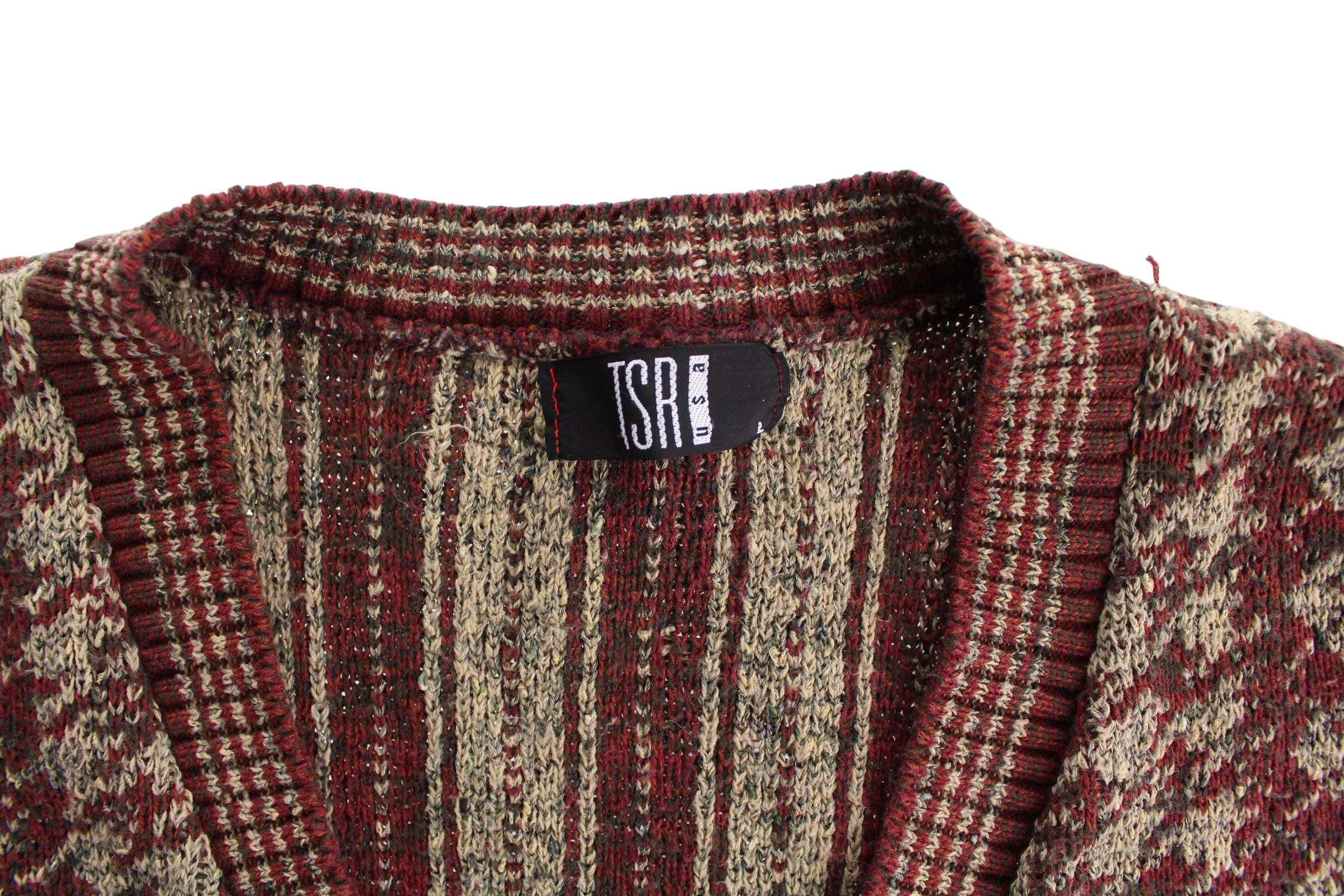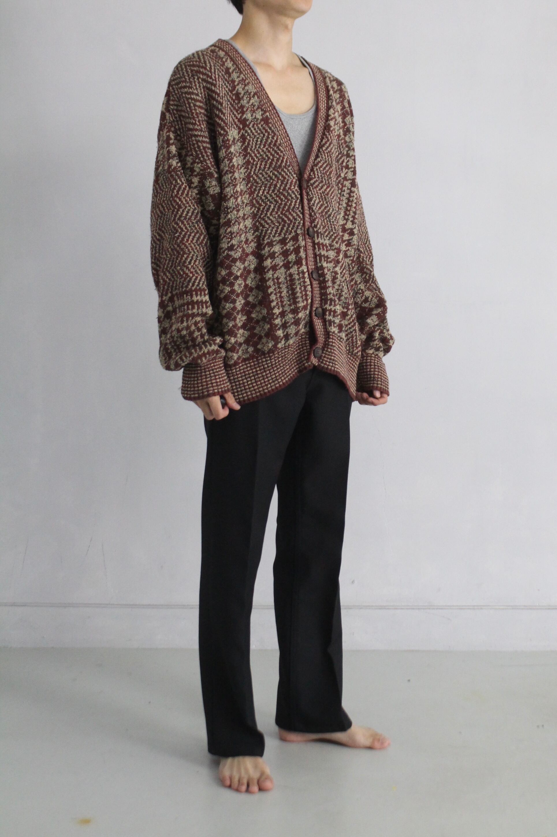【OTSU】1990's houndstooth pattern design knit cardigan -8692-