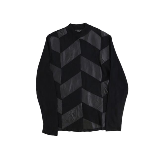 【OTSU】genuine leather swiching design mock neck knit sweater -8714-