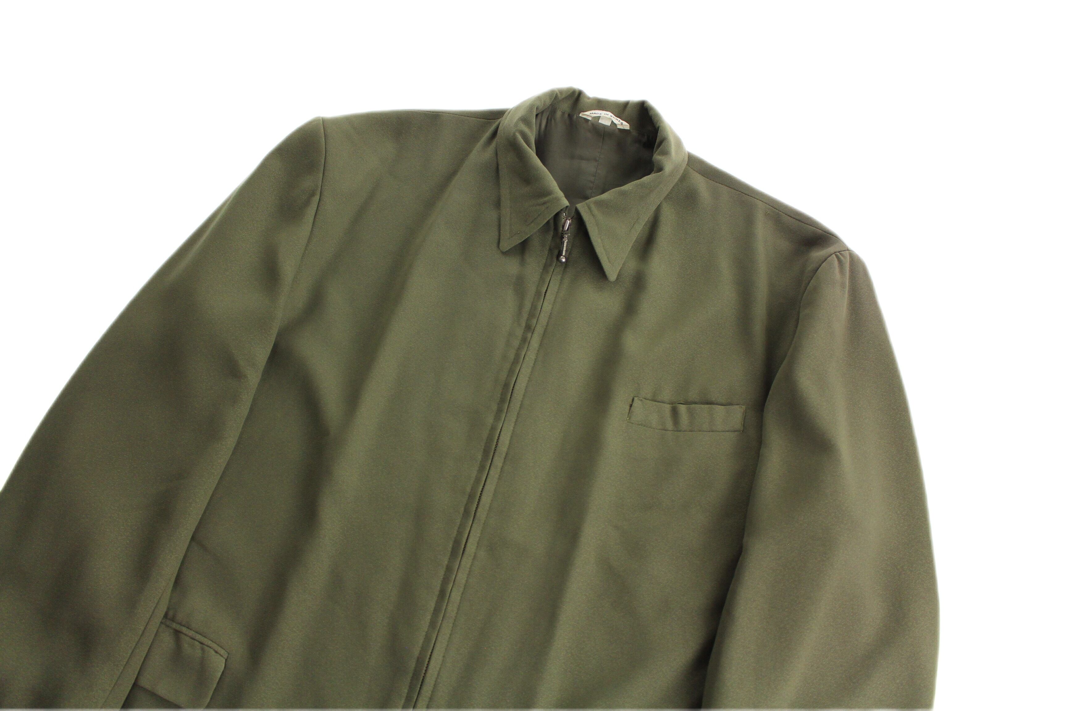 この手のアイテムはボタンタイプが圧倒的に多いですがこちらはジップアップタイプ。一際目を惹く棒状のシルバージップファスナーに通常よりも鋭さがあるとんがった襟元。90sらしいディテールに心奪われます。両サイドにはフラップポケットが付き,胸ポケットも◎肩がディテールされてるタイプなのでしっかりアウターとしても機能。もちろんコートのインナーとしても優秀☺︎