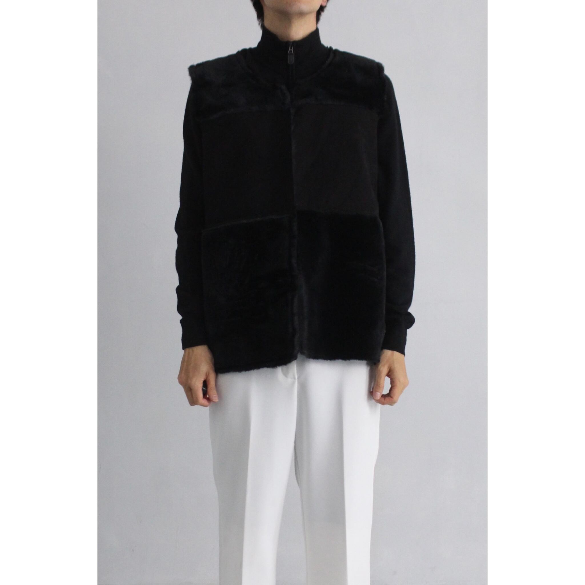 ふっかふかなファーともちもちフェイクムートンの切り替えデザインベスト。