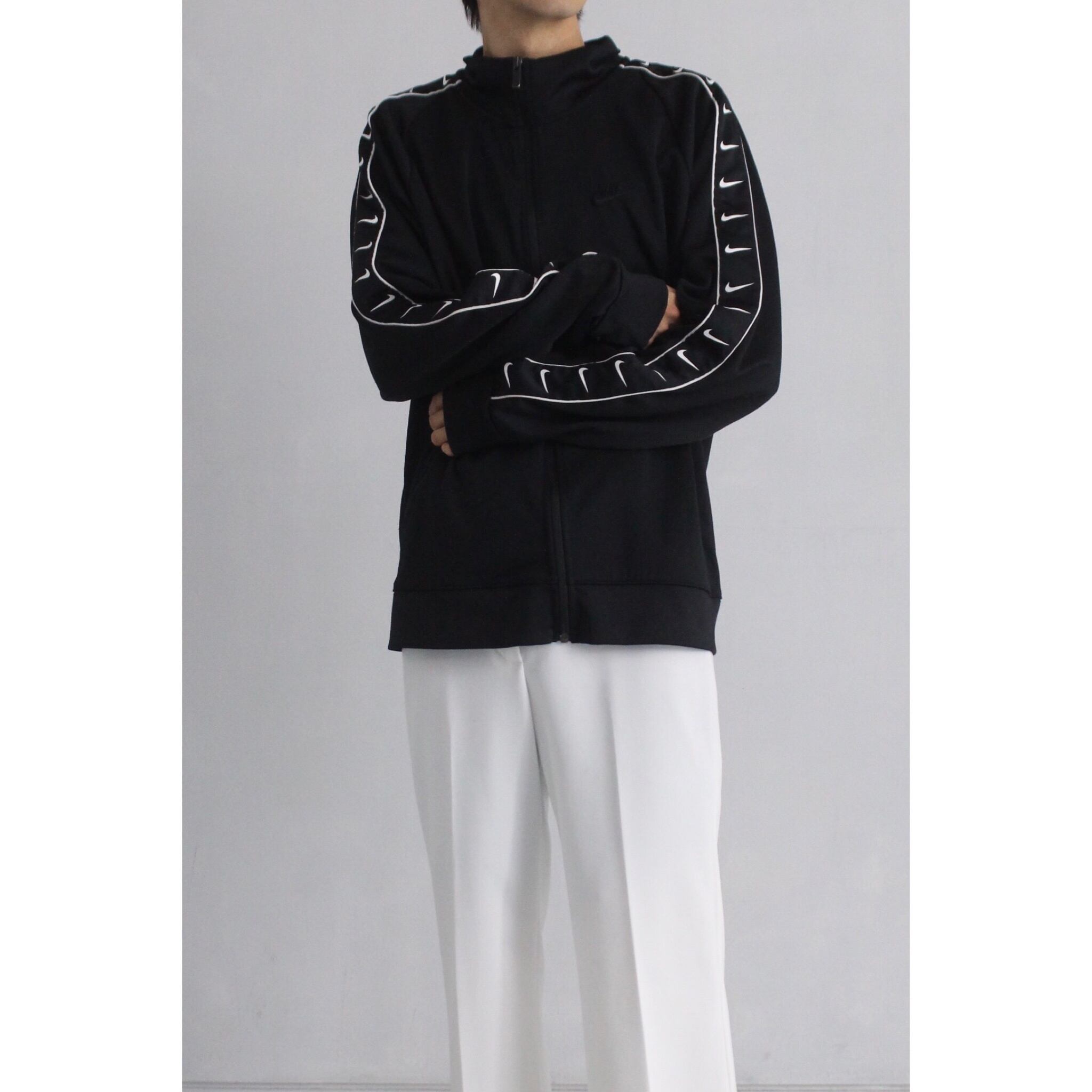 一際目を惹くアームデザインはこれでもかと配置されたインパクトあるNIKEのロゴデザイン。他人とは被りのない唯一無二のアイテム。ブラック×ホワイトのモノトーンの配色で汎用性も高く扱いやすい一着。