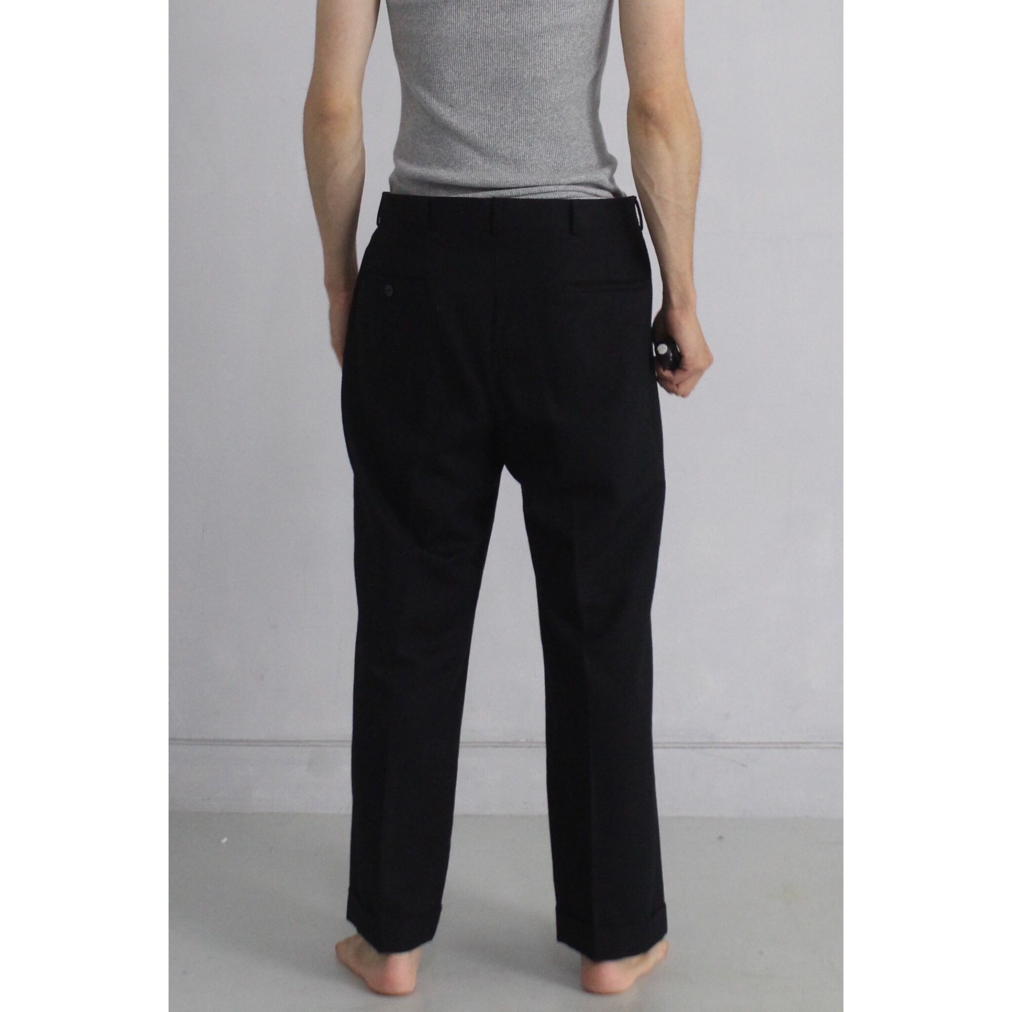 ストンと落ちるようなワイドなシルエットでストレートな作り。ブランドだとテーパードの物は多いですが裾まで綺麗に伸びるシルエットが堪らないです。。太すぎないところもブランドならでは。やはりブランドのパンツは群を抜いた仕立ての良さです。ゆとりを持って作られたウエスト2タックのディテールで汎用性抜群かと。
