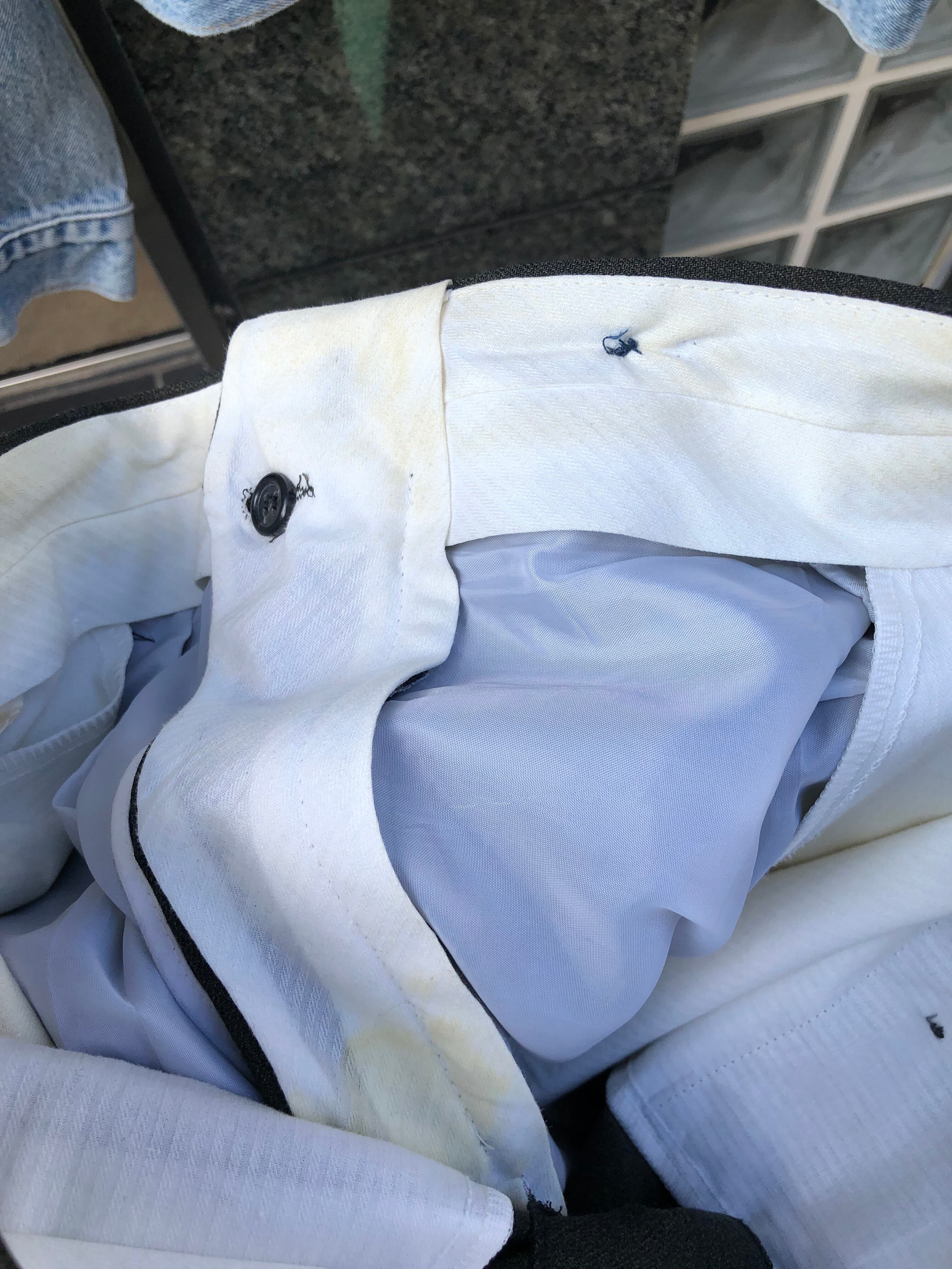 パンツ裏地に汚れがございます。着用時には全く気にならないです。(画像参照お願い致します。)