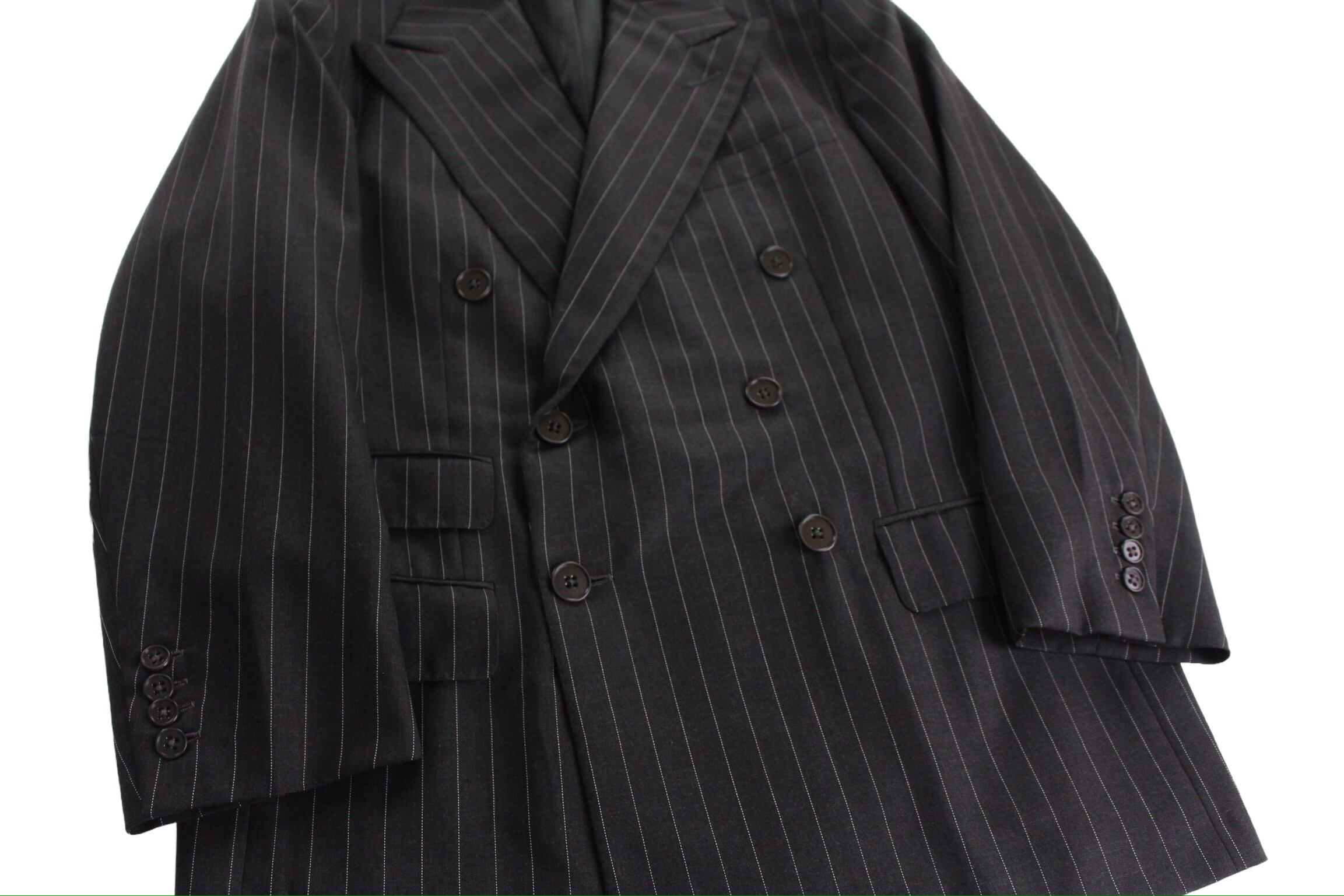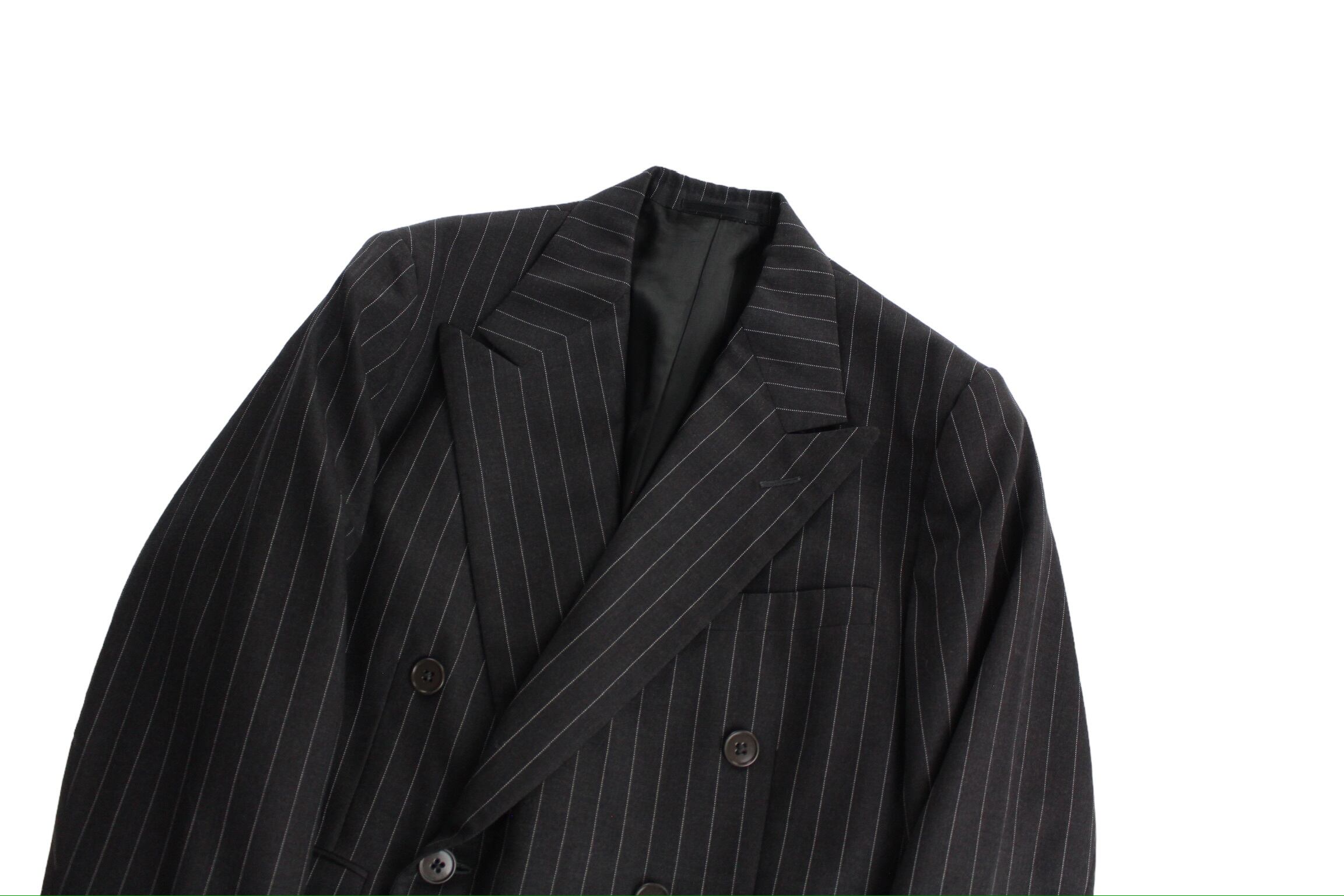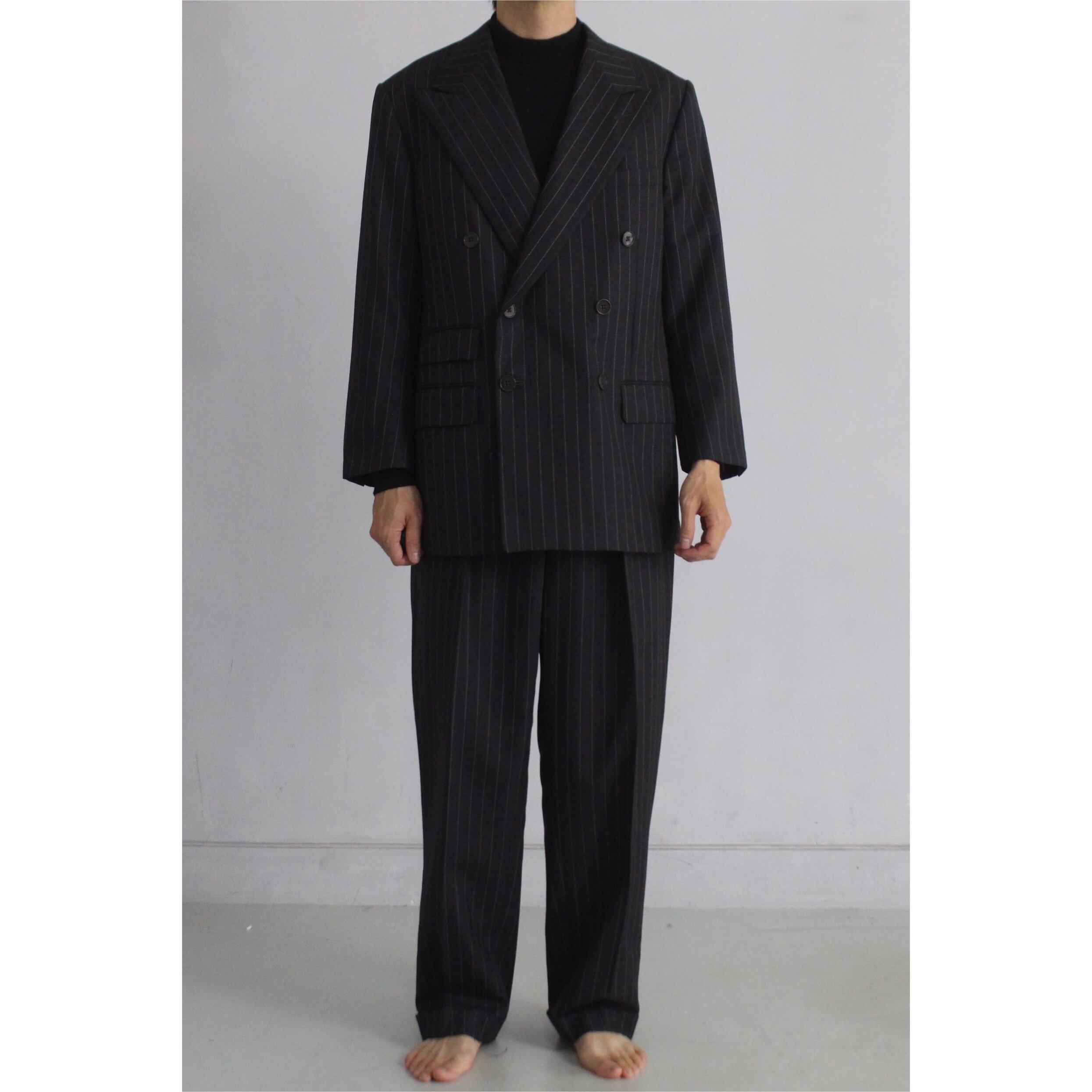 【FIFTY-FIFTY】Ralph Lauren purple label 2piece stripe suit setup tailored jacket double & 2tuck slacks with suspender -8238-