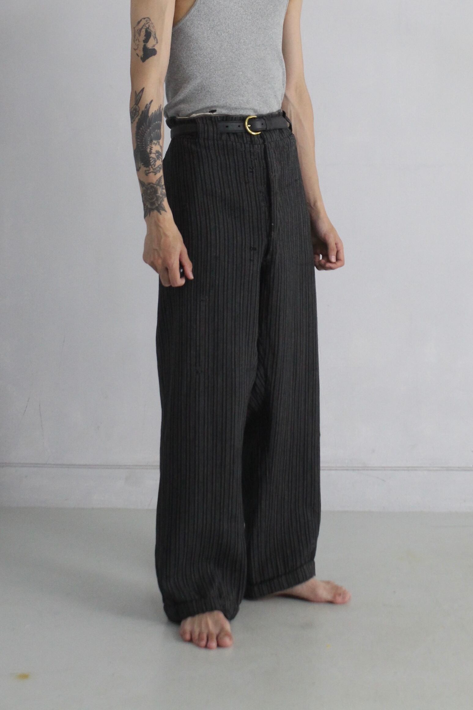 【OTSU】1950's vintage stripe design "boro" wide slacks -8798-